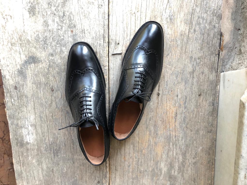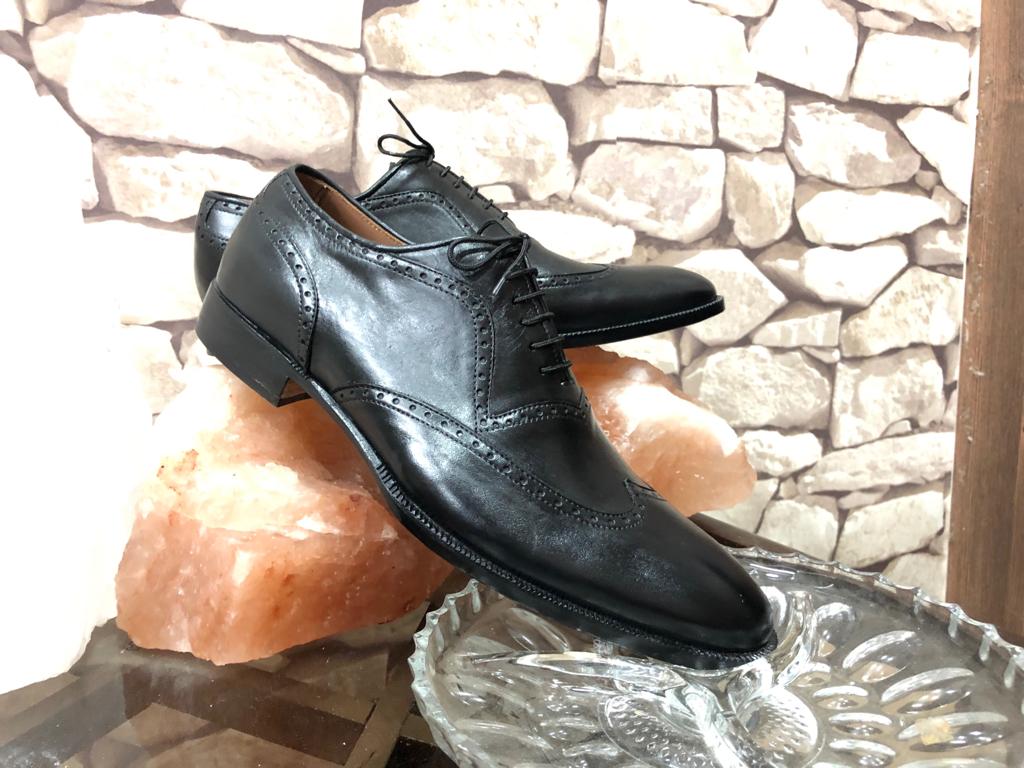 Handmade Black Color Leather Wing Tip Lace Up shoes for men's