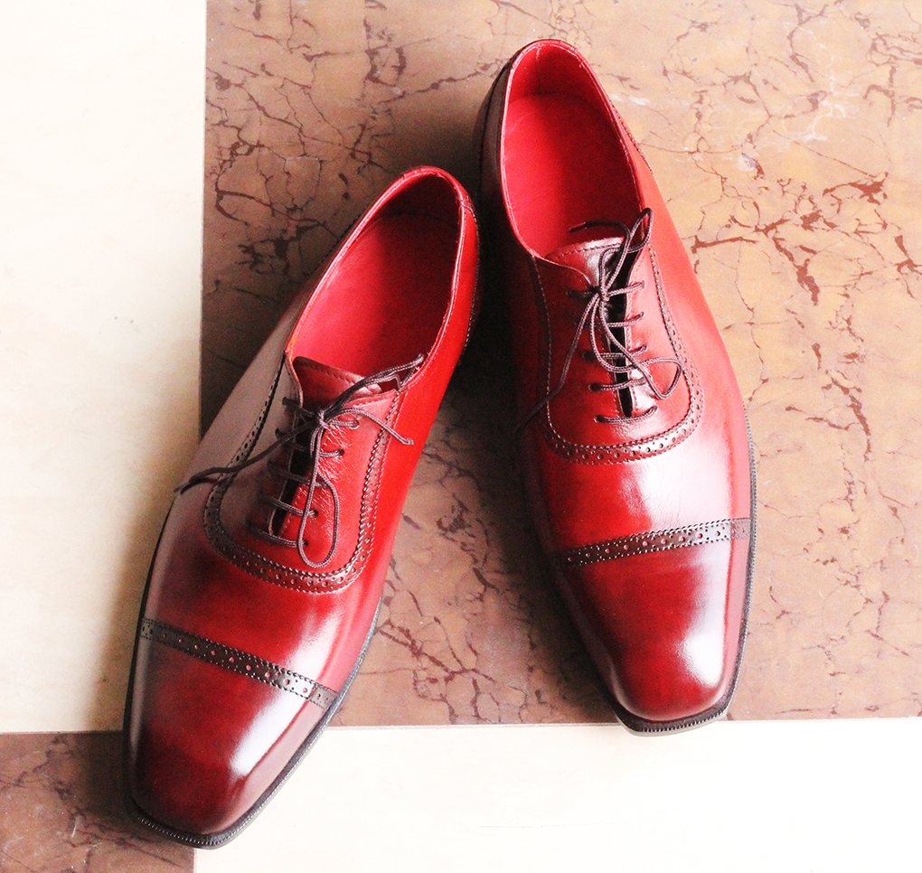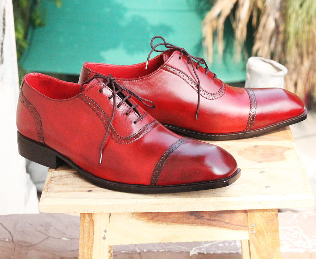 Handmade Men's Designing Shoes, Men's Burgundy Leather Cap Toe Lace Up Shoes