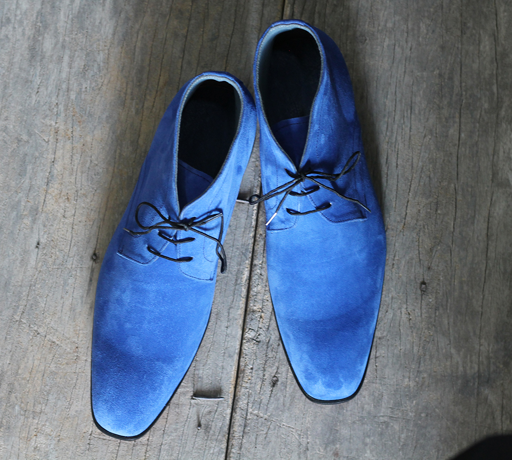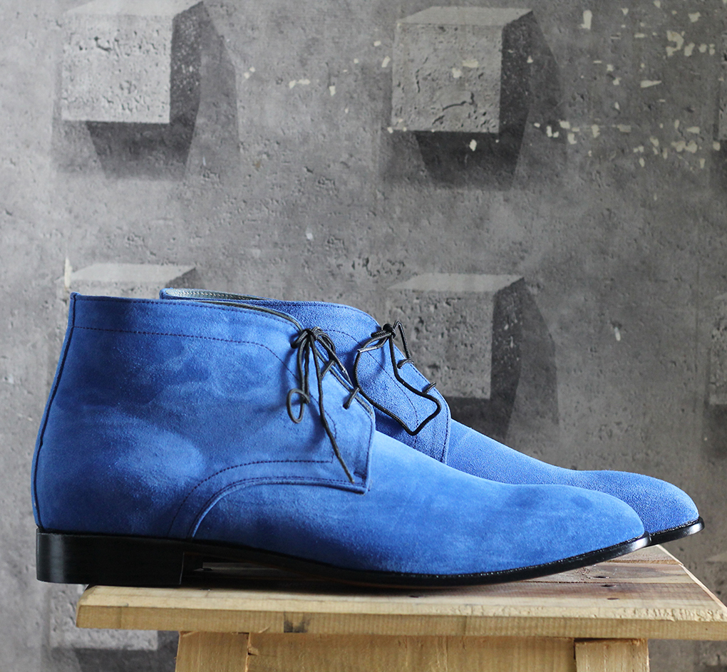 New Handmade Half Ankle Blue Suede Lace Up Boot For Men's