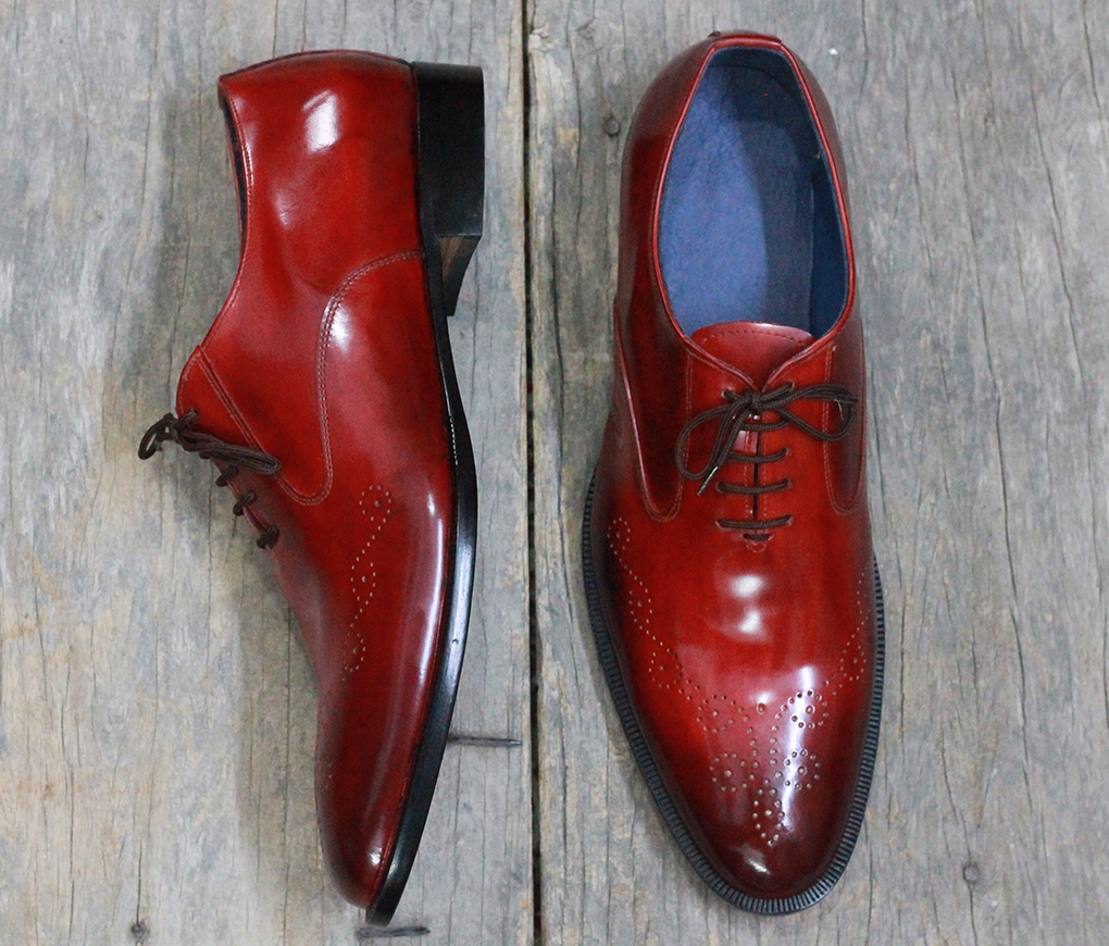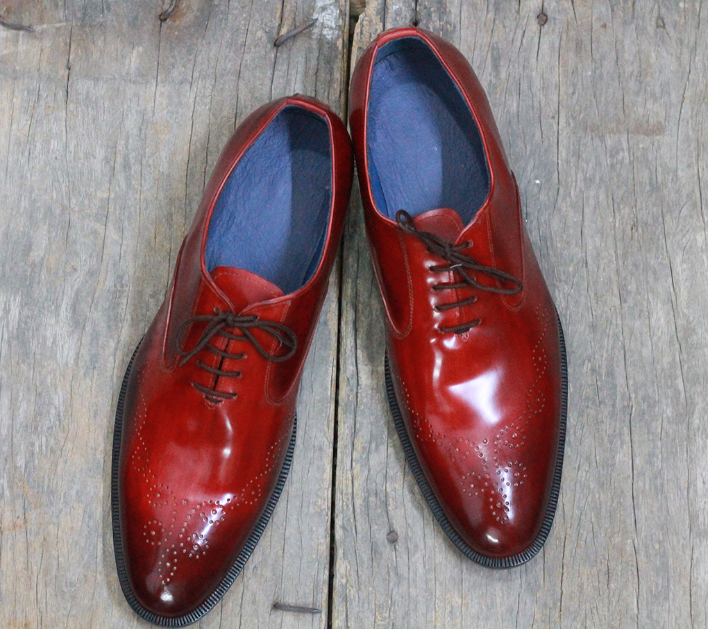 Men's Handmade Stylish Burgundy Brogue Leather Lace Up Shoes