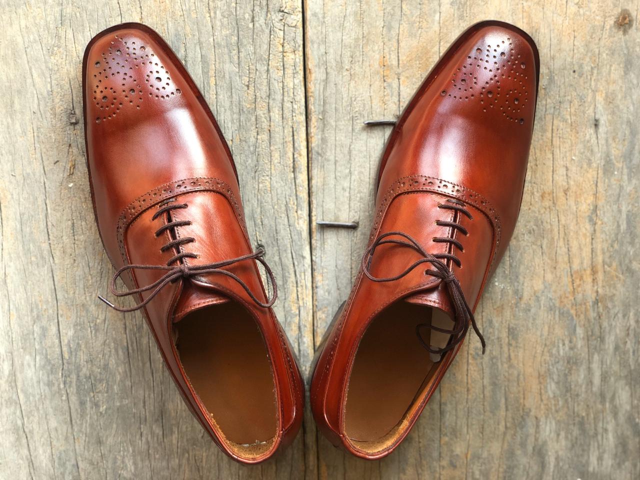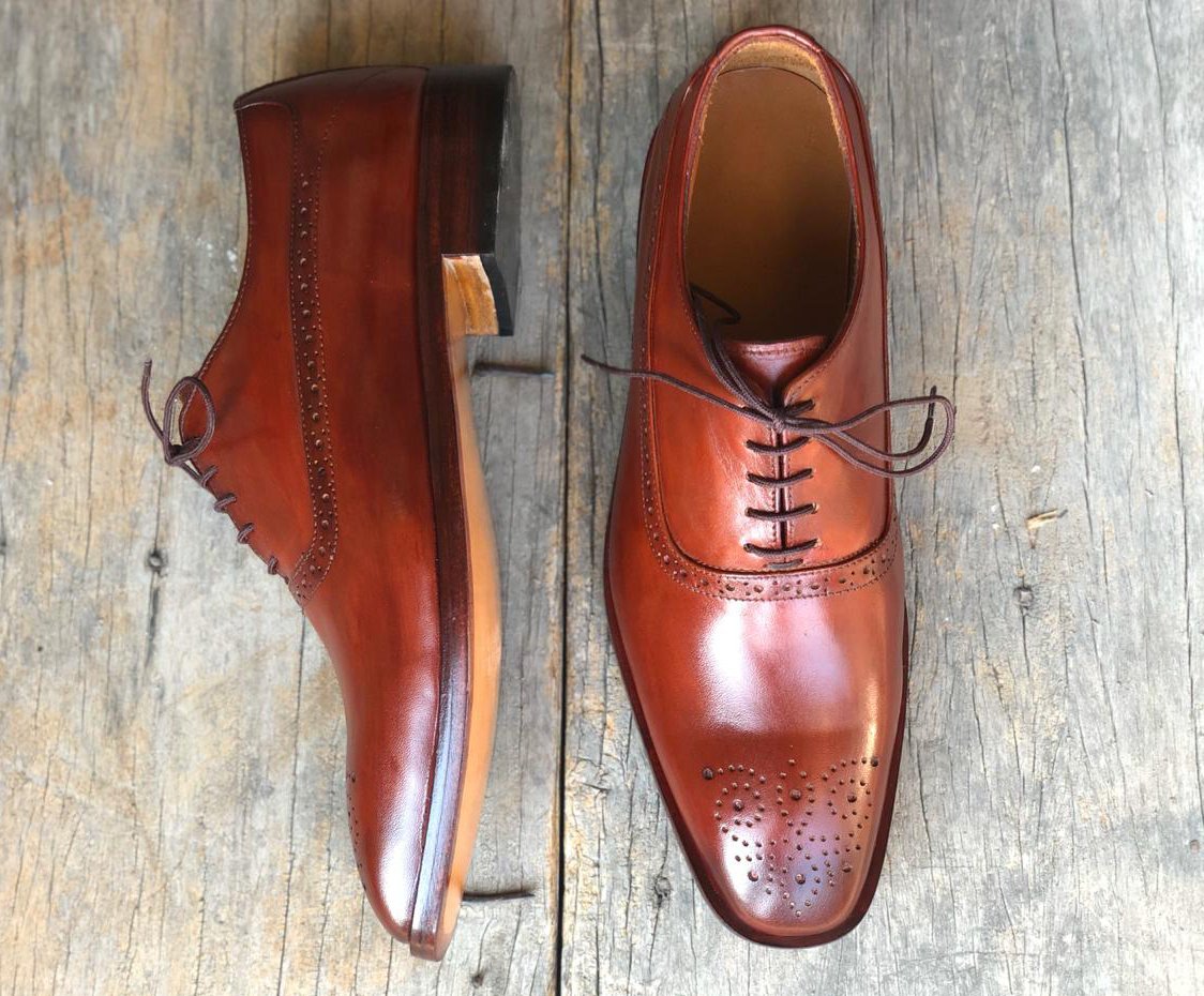 Men's Handmade Stylish Brown Brogue Leather Lace Up Shoes
