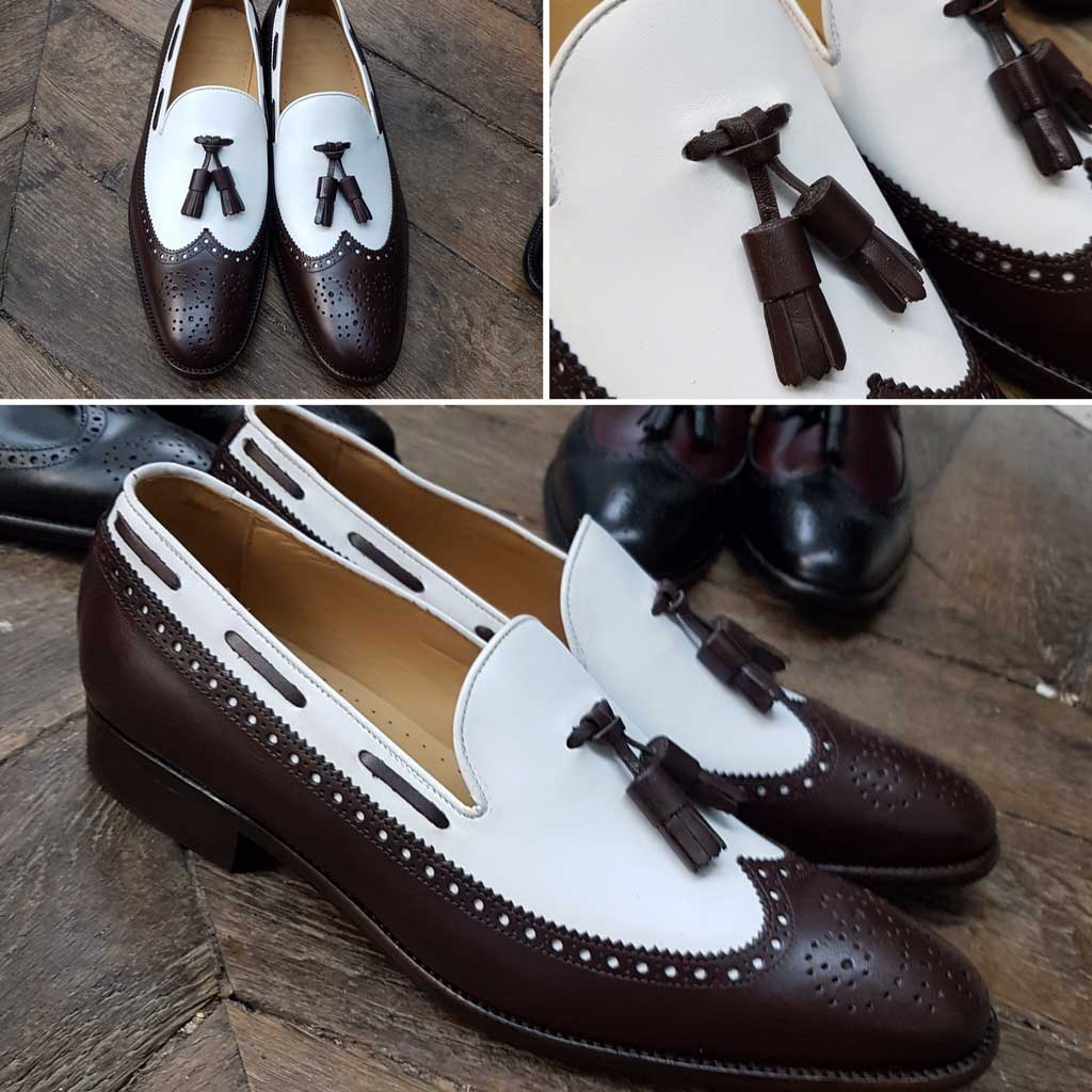 Men's White & Black Wing Tip Brogue Leather Tussles Loafers Shoes