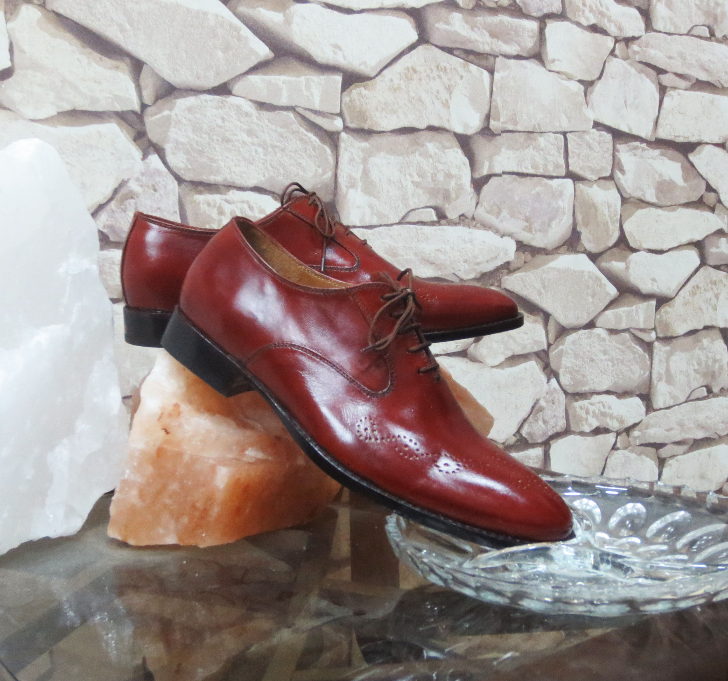 Handmade Burgundy Brogue Lace Up Leather Shoes For Men's