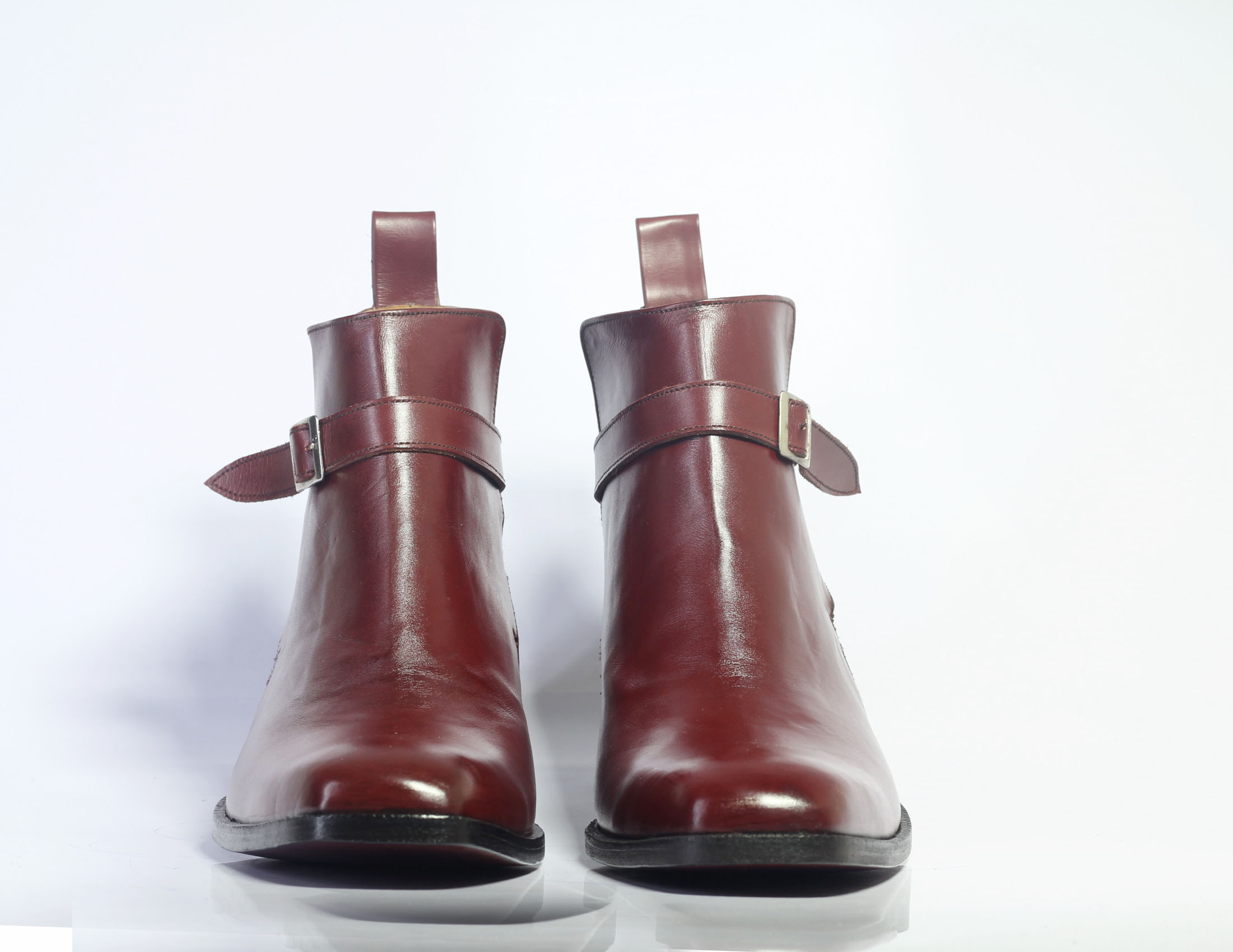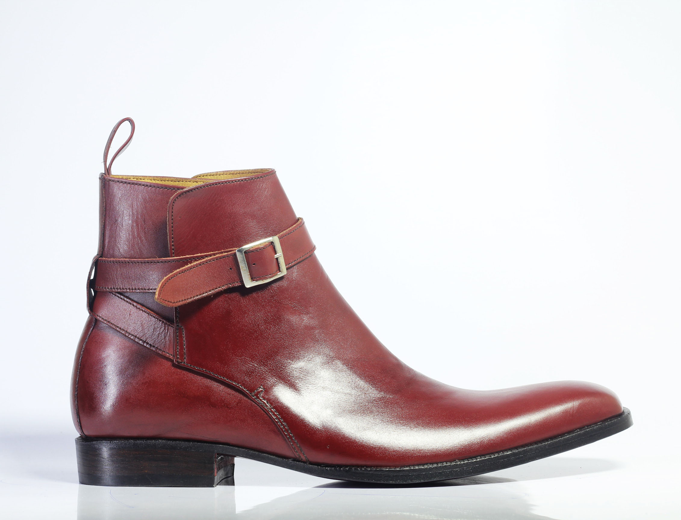 Handmade Men's Burgundy Leather Half Ankle Jodhpurs Boots