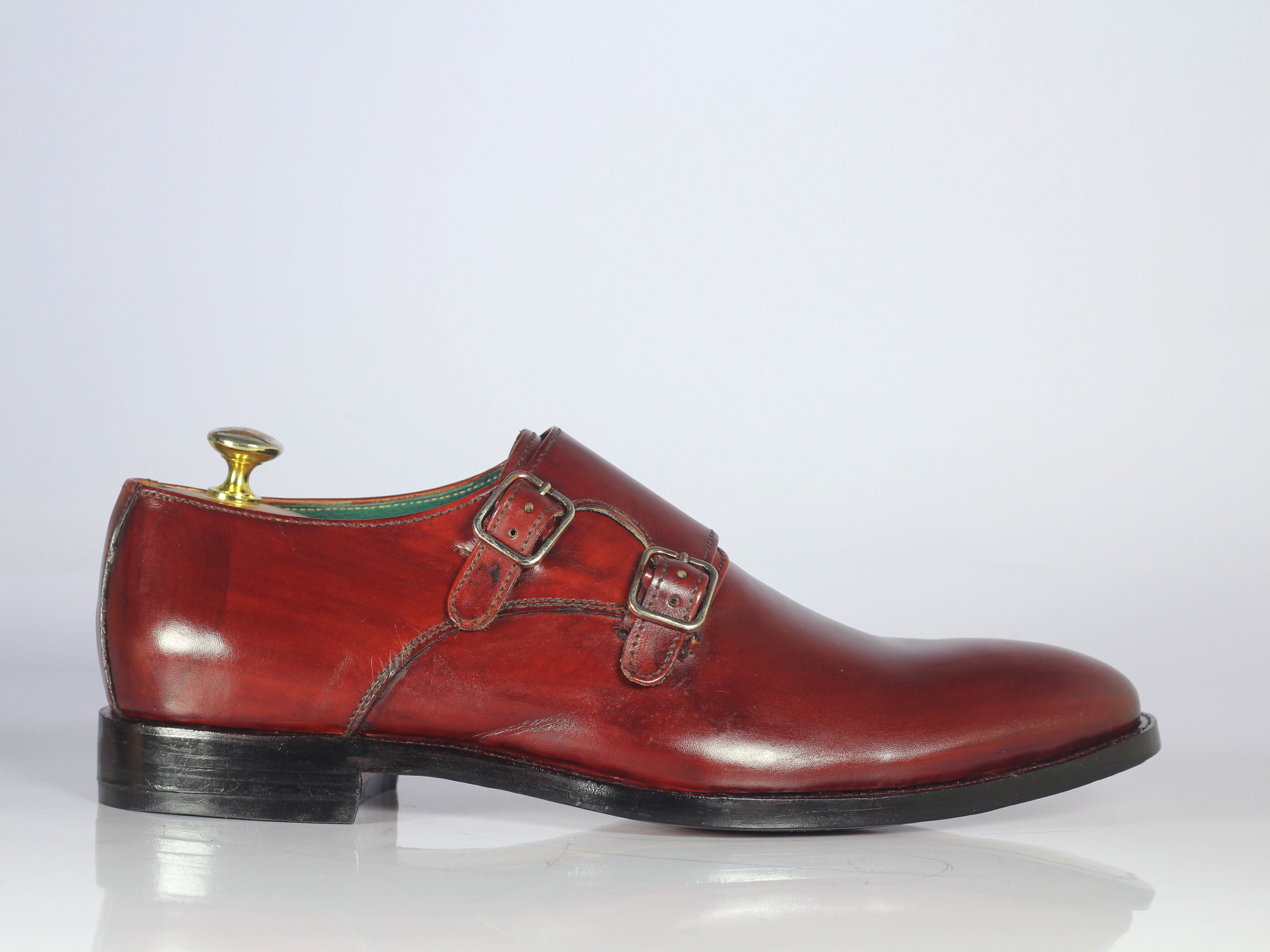 Men's Burgundy Shoes, Men's Leather Double Monk Strap Formal Shoes