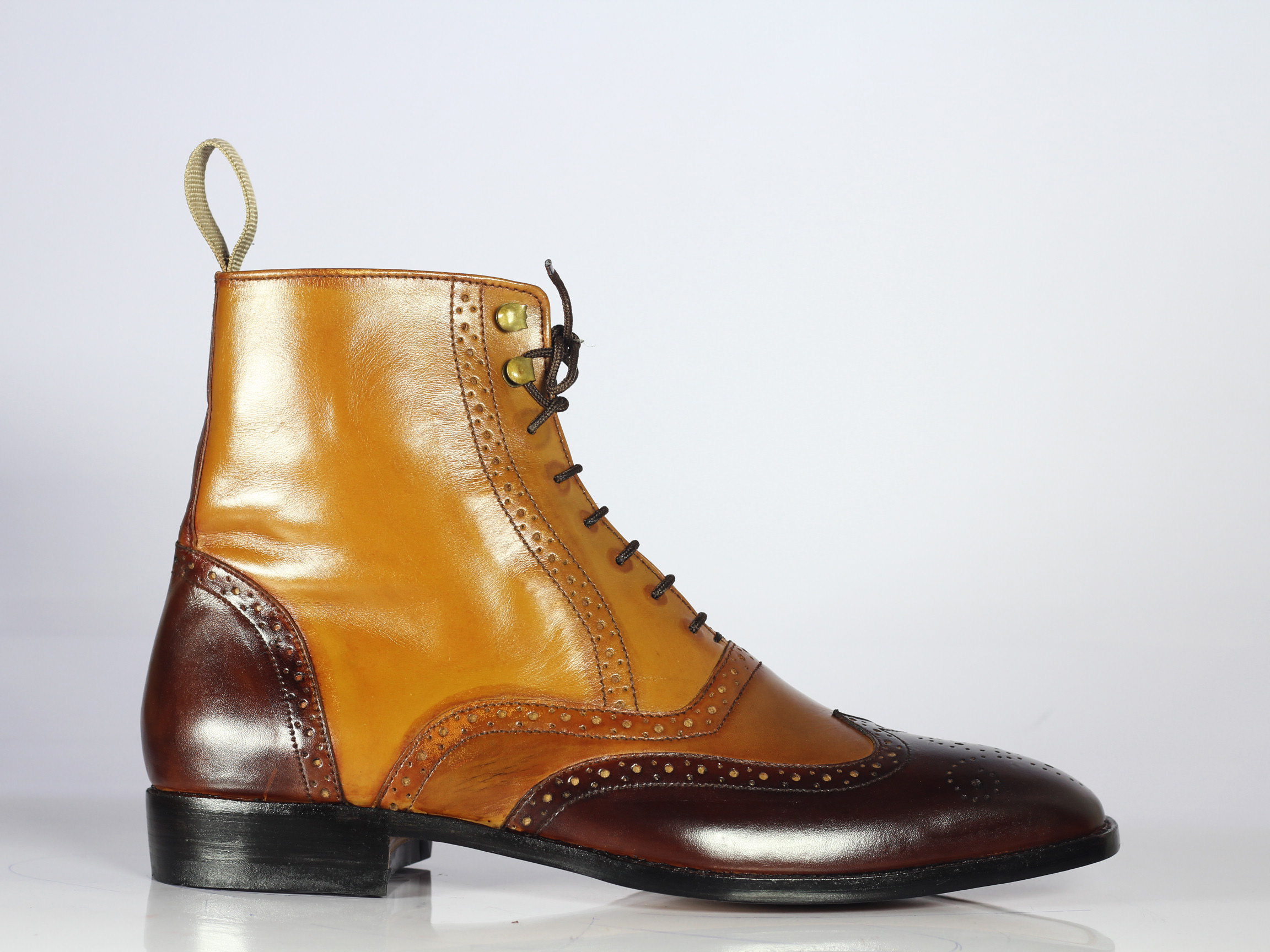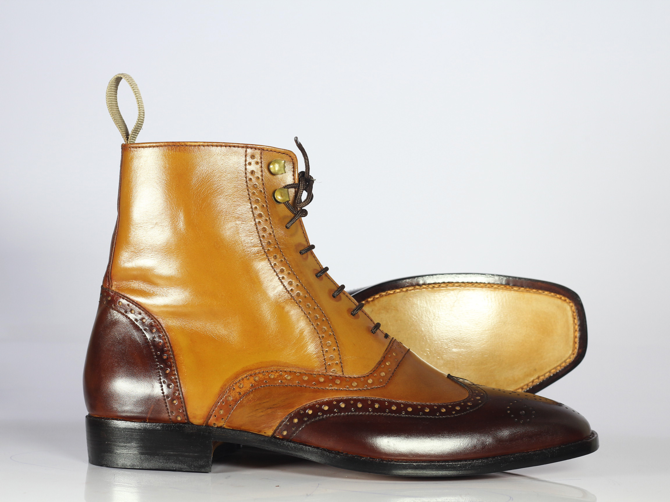Men's 2 Tone Ankle Leather Wing Tip Lace up Boots