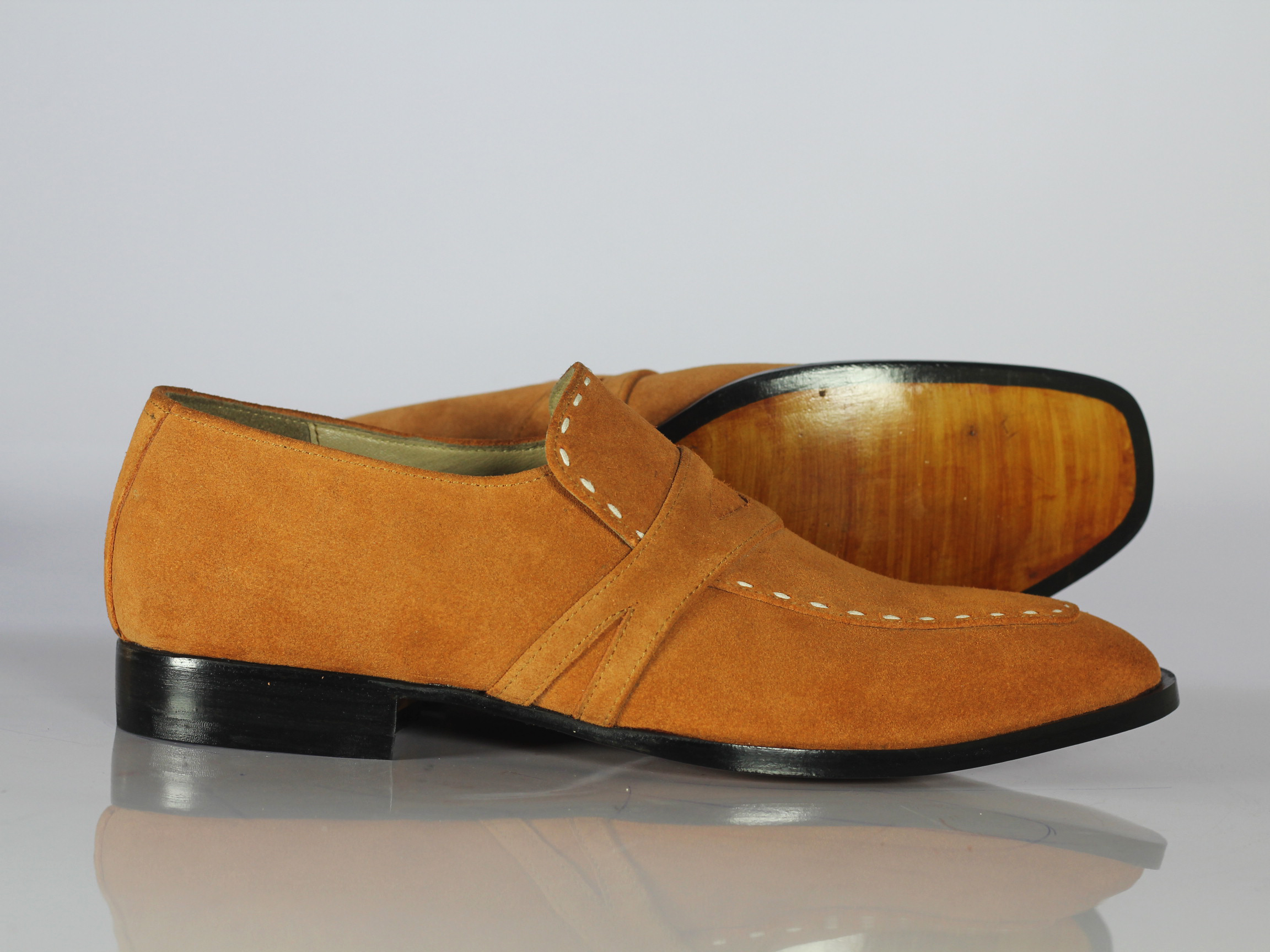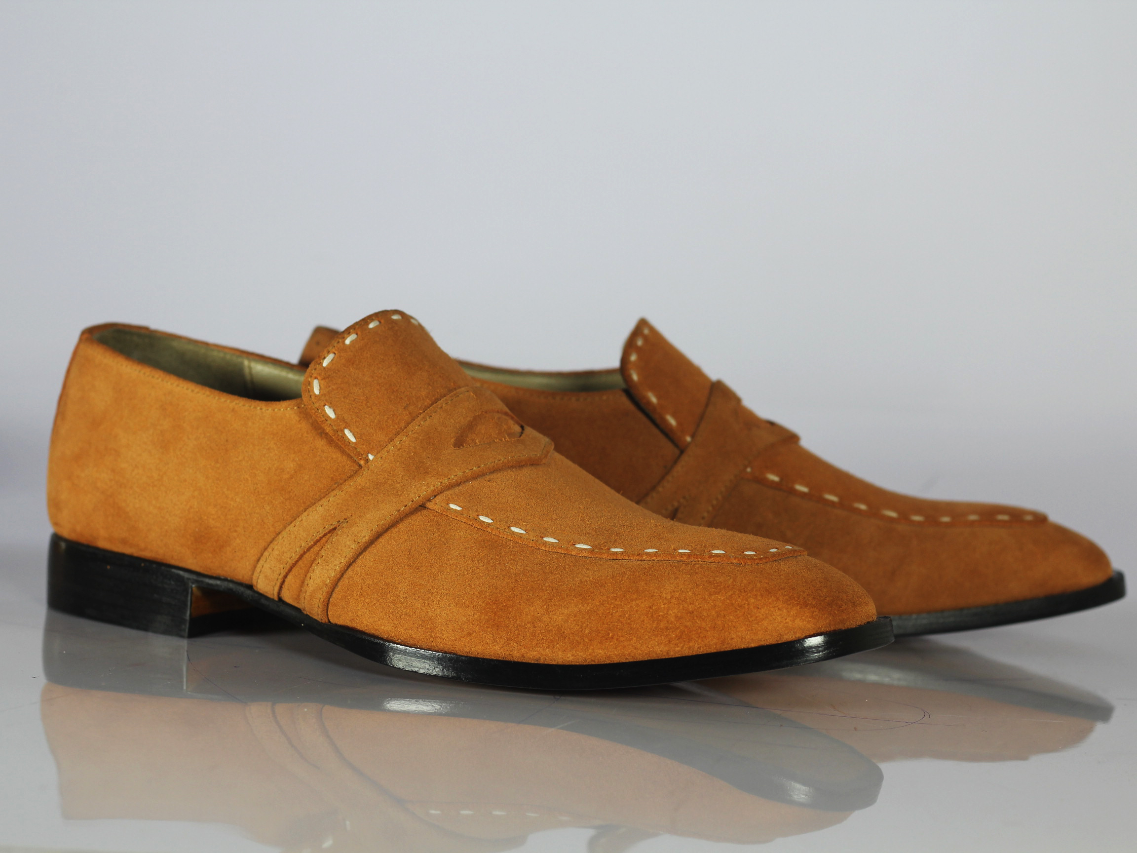 Men's Tan Shoes, Men's Penny Loafers Suede Shoes.