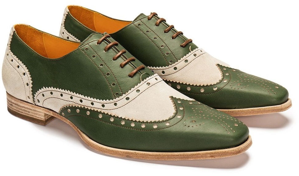 Hand Crafted Men's Two Tone Ankle Shoes,Men's Leather Wing Tip Dress Shoes