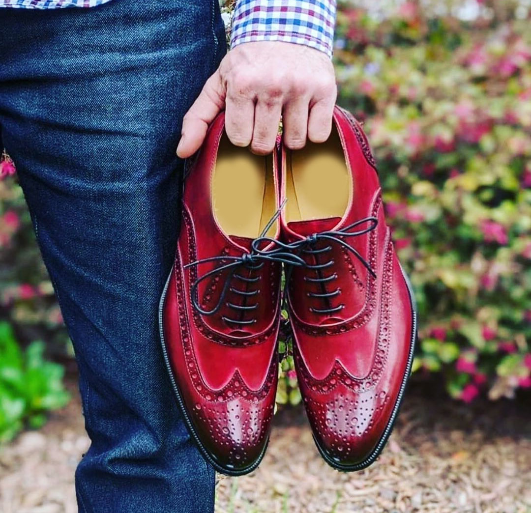 Bespoke Red Wing Tip Leather shoes, dress shoes,Fashion Shoes