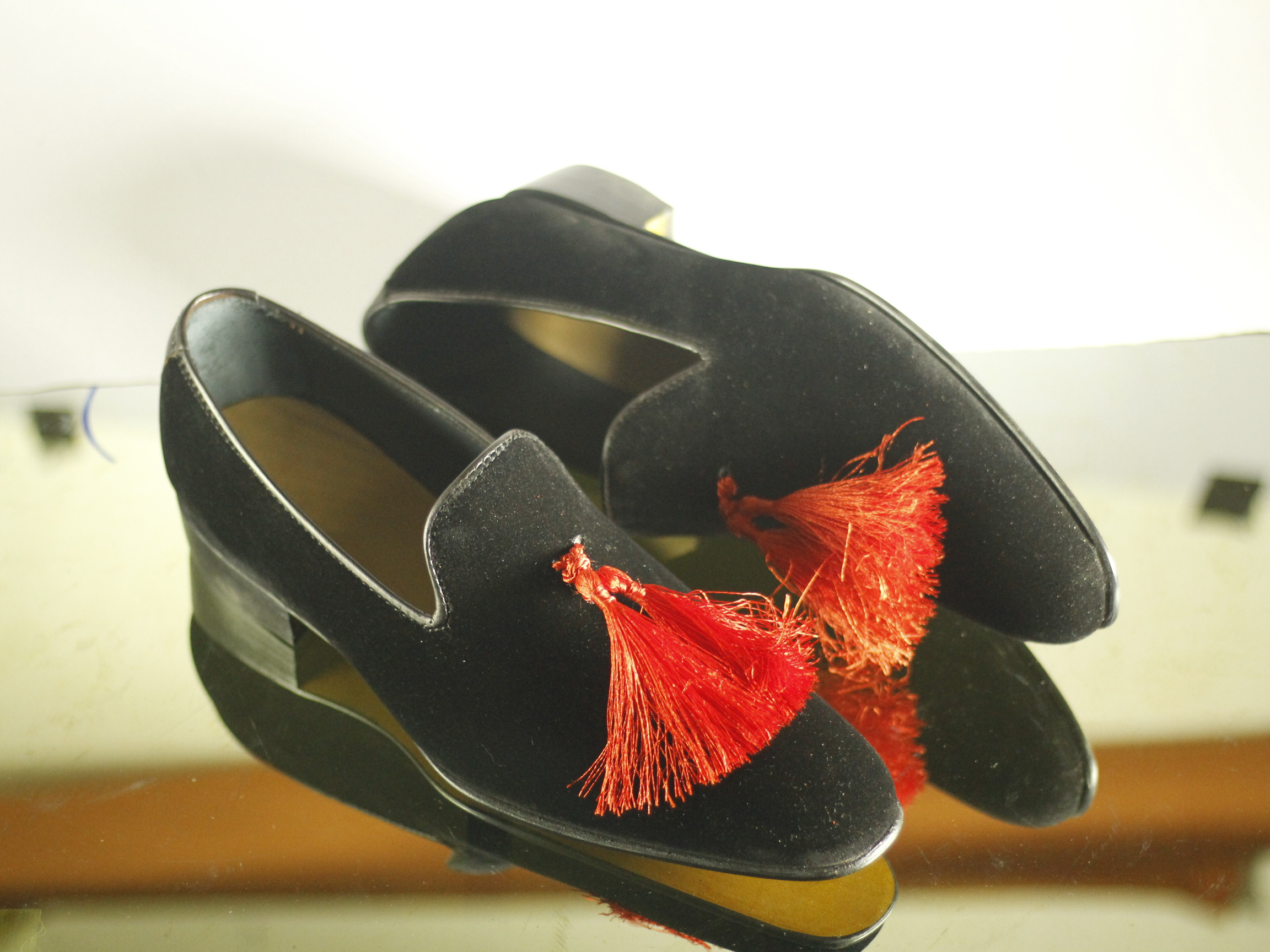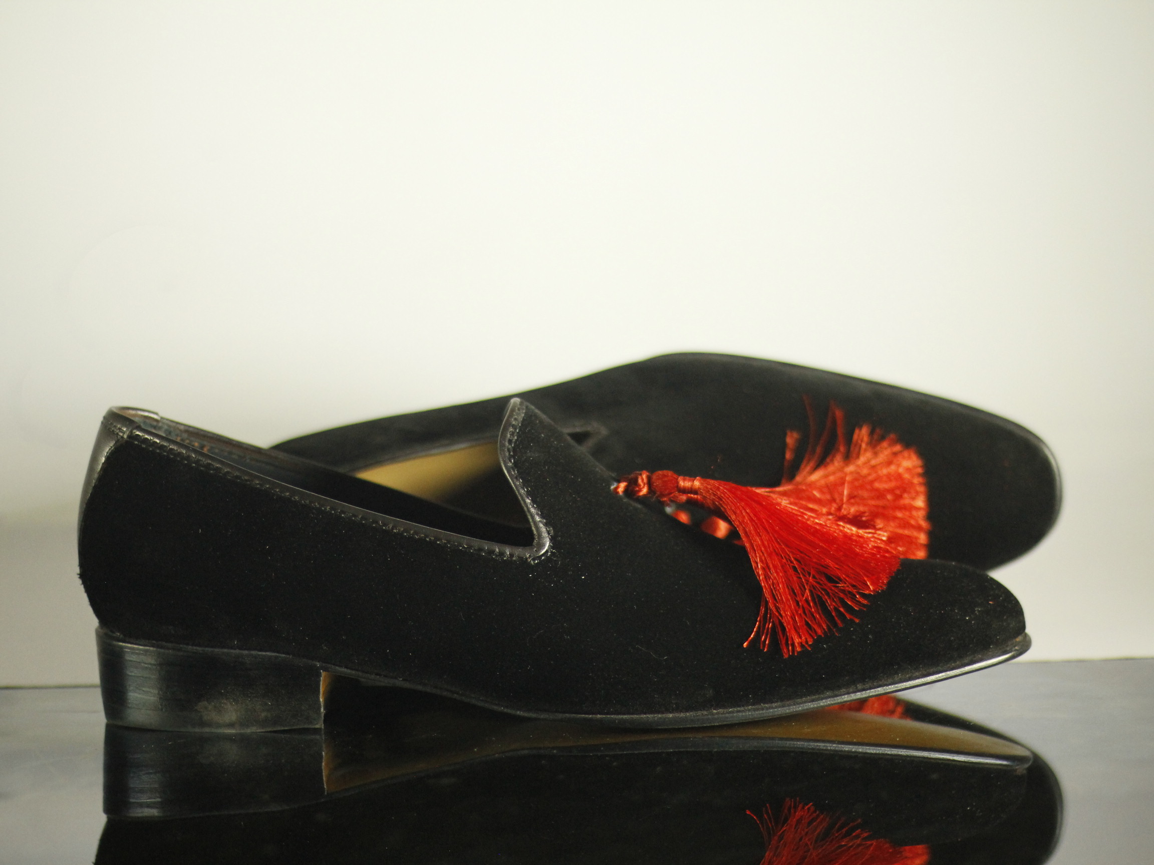 Handmade Men's Black Shoes, Men's Velvet With Red Tussles Formal Dress Shoes