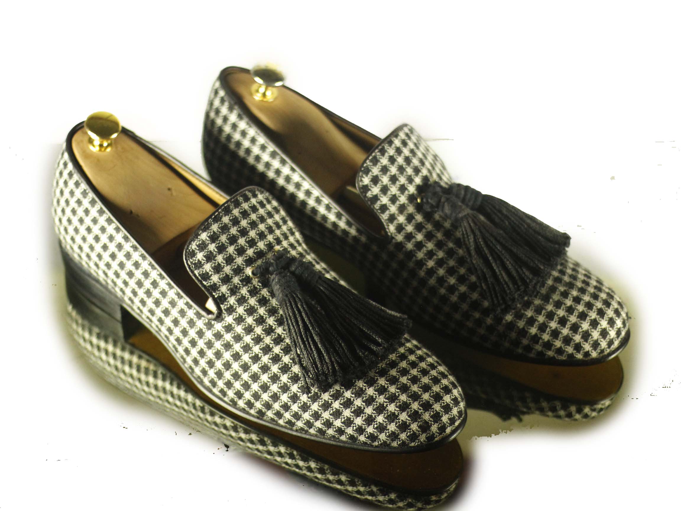 Handmade Men White & Black Tweed Fashion Leather Loafers Dress Shoes Casual Flats Slippers