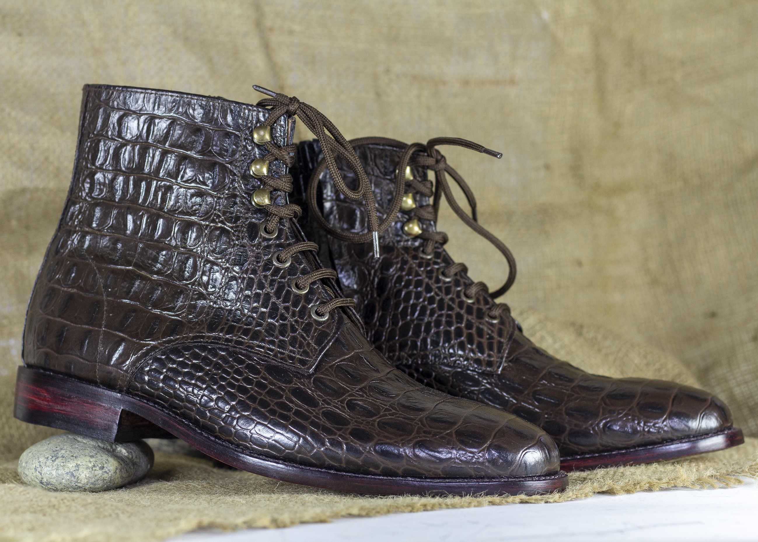 Brown Alligator Boots, Men Letaher Boots, Dress Ankle Boots