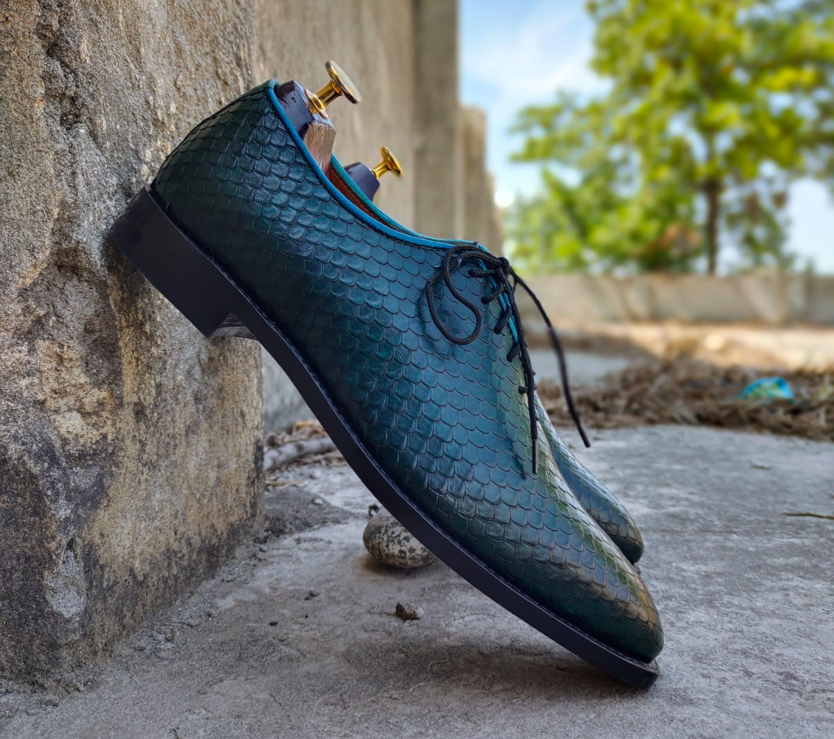 - Style Men's Handmade python Shoes , Dress Formal Shoes, Green Two Tone Shoes