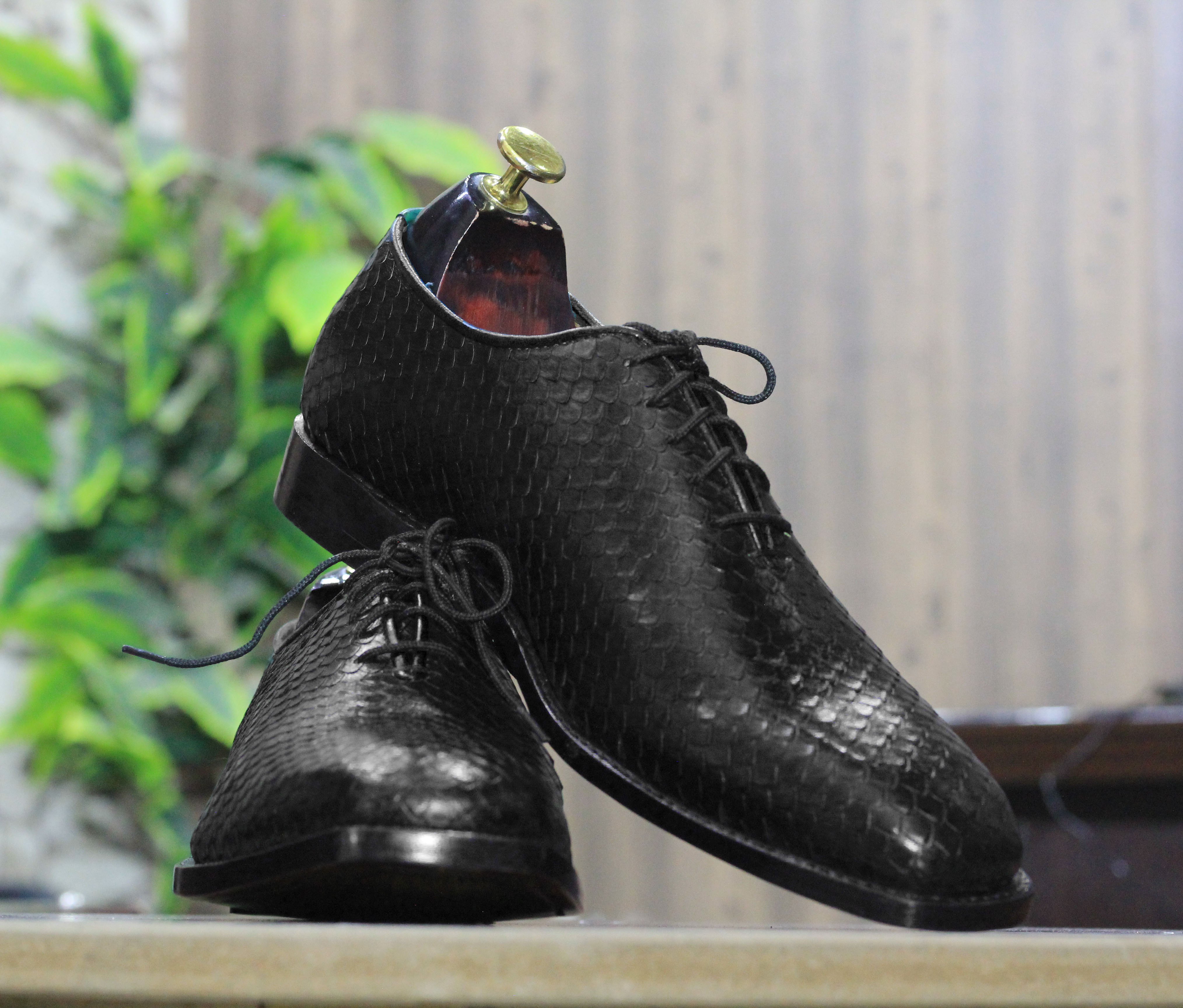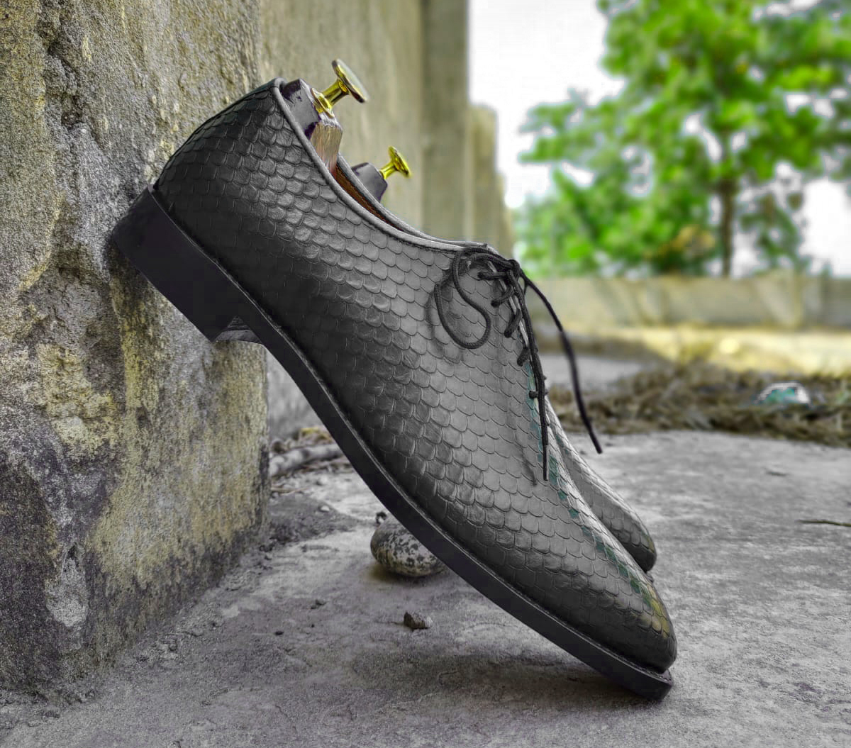 Handmade Python Texture Leather Whole Cut Shoes , Dress Formal Shoes, Green Two Tone Shoes
