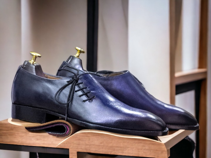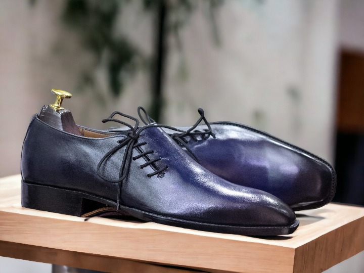 Side Lace Up Style New Fashion Pure Handmade Leather Navy Blue Colour Shoes for Men's