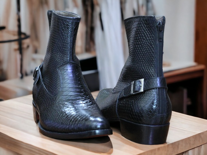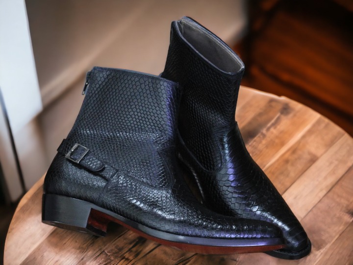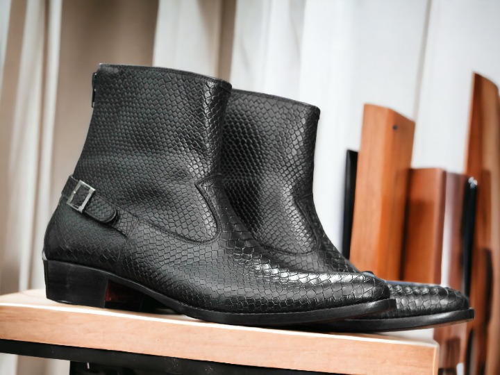 Handmade Men Phthon Buckle Leather ankle bootsCondition New With Box