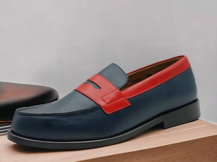 Two tone Blue Men's Handmade Penny Leather Loafer Shoes , Slip On Catual Shoes