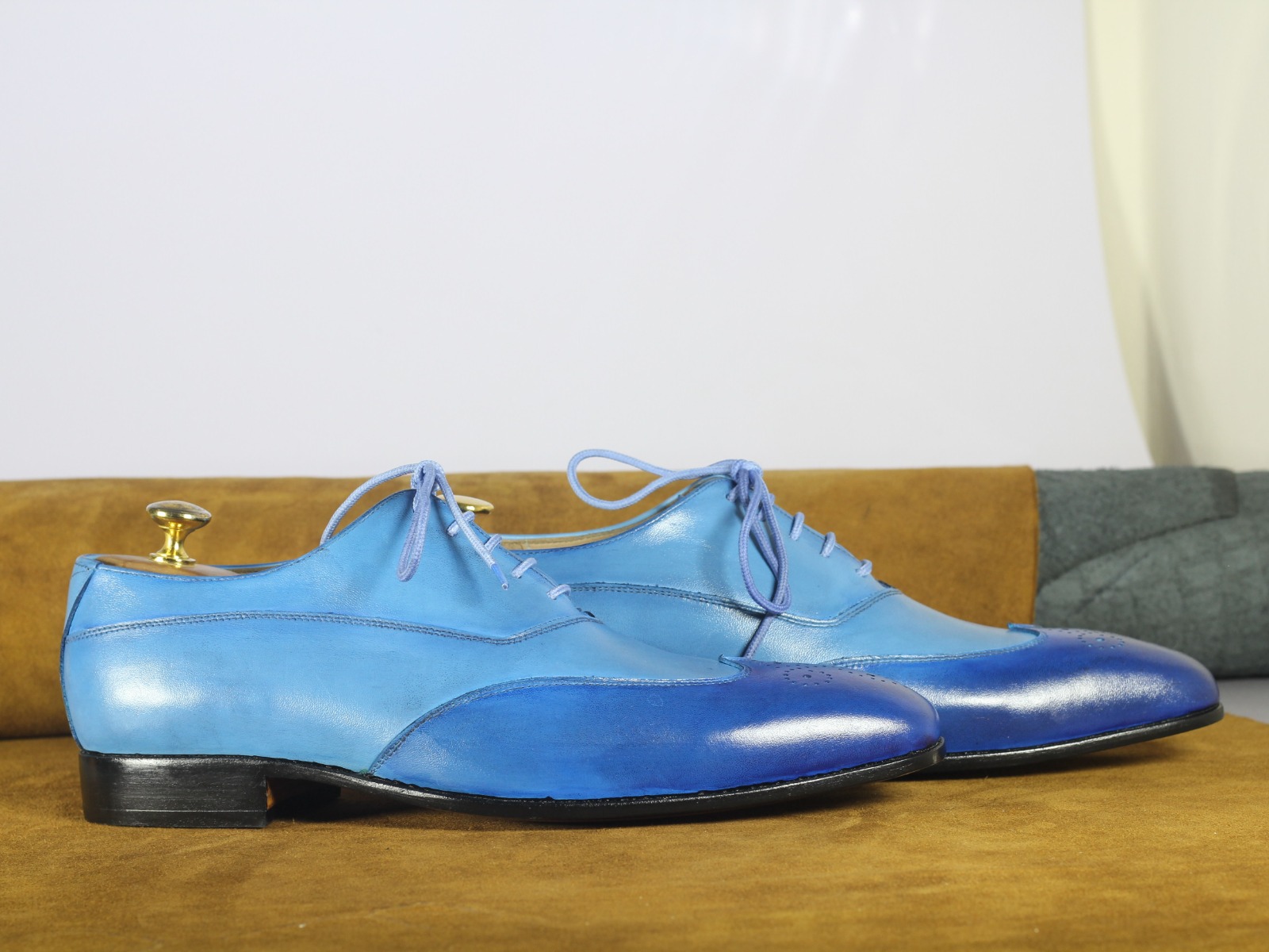 Handmade Blue Leather Lace Up Men's Dress Office Shoes