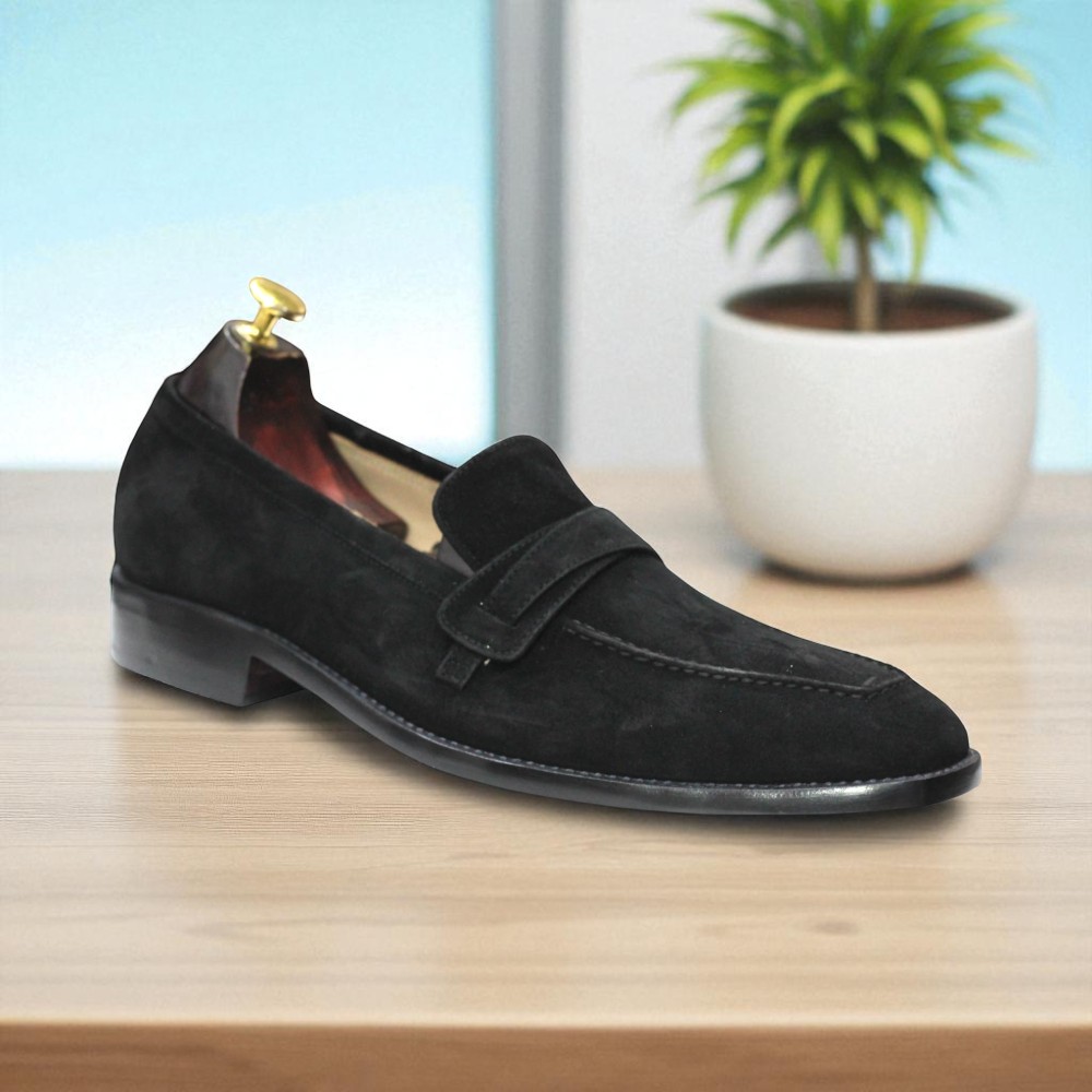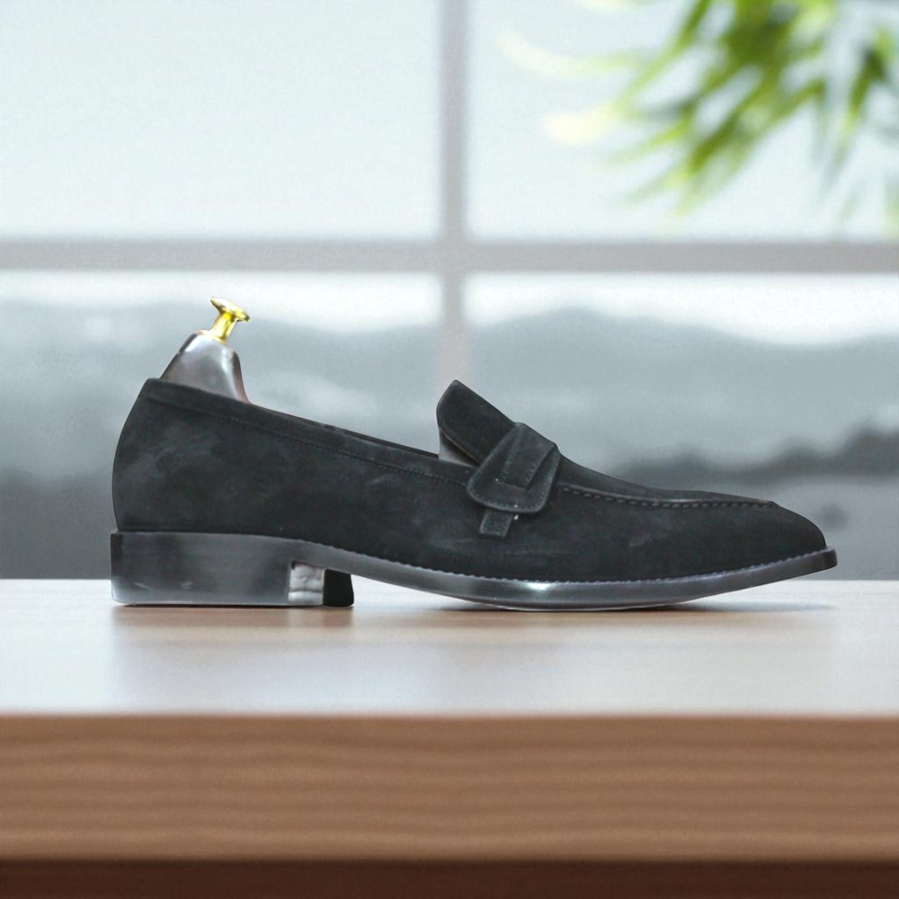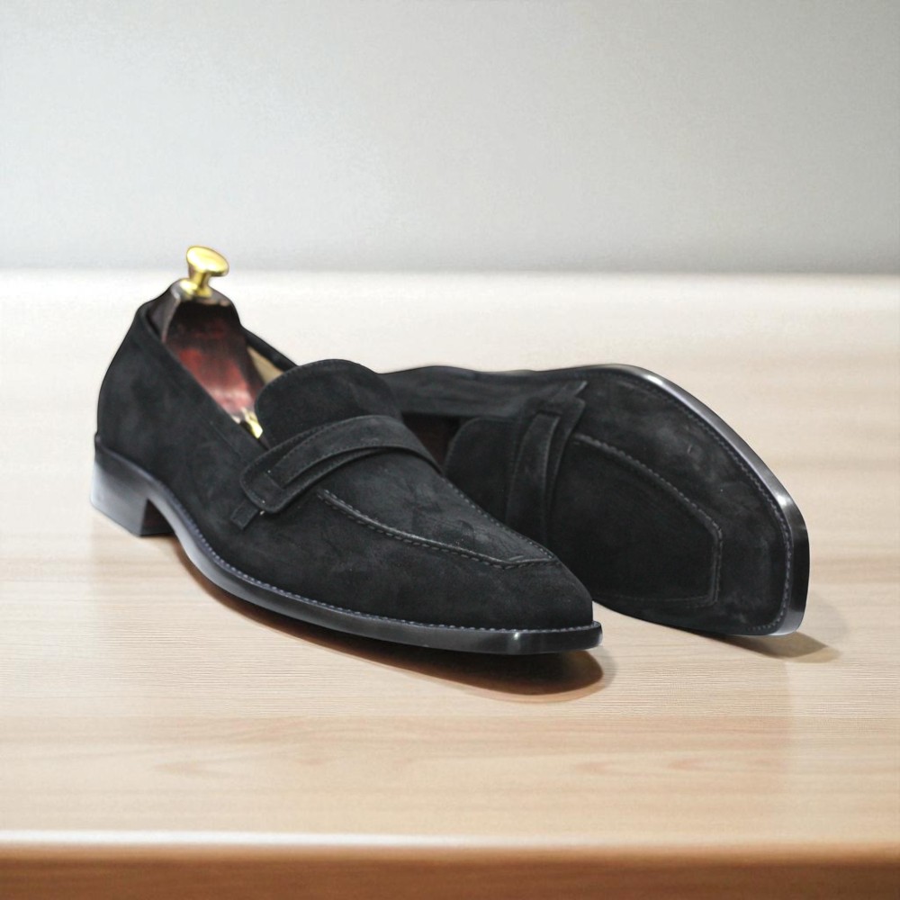 Handmade Black Suede Penny Loafer Shoes For Men's