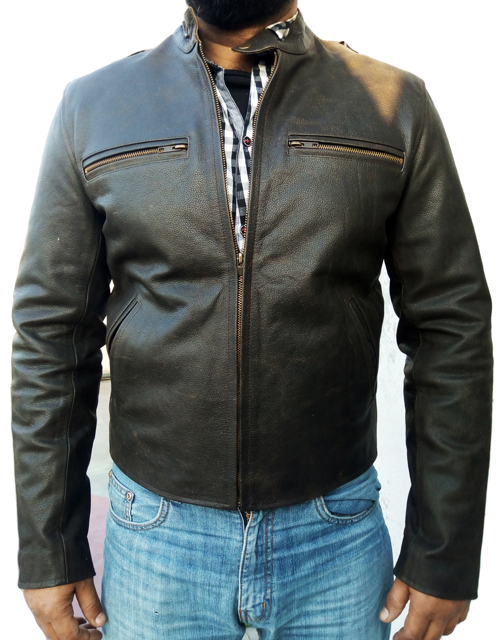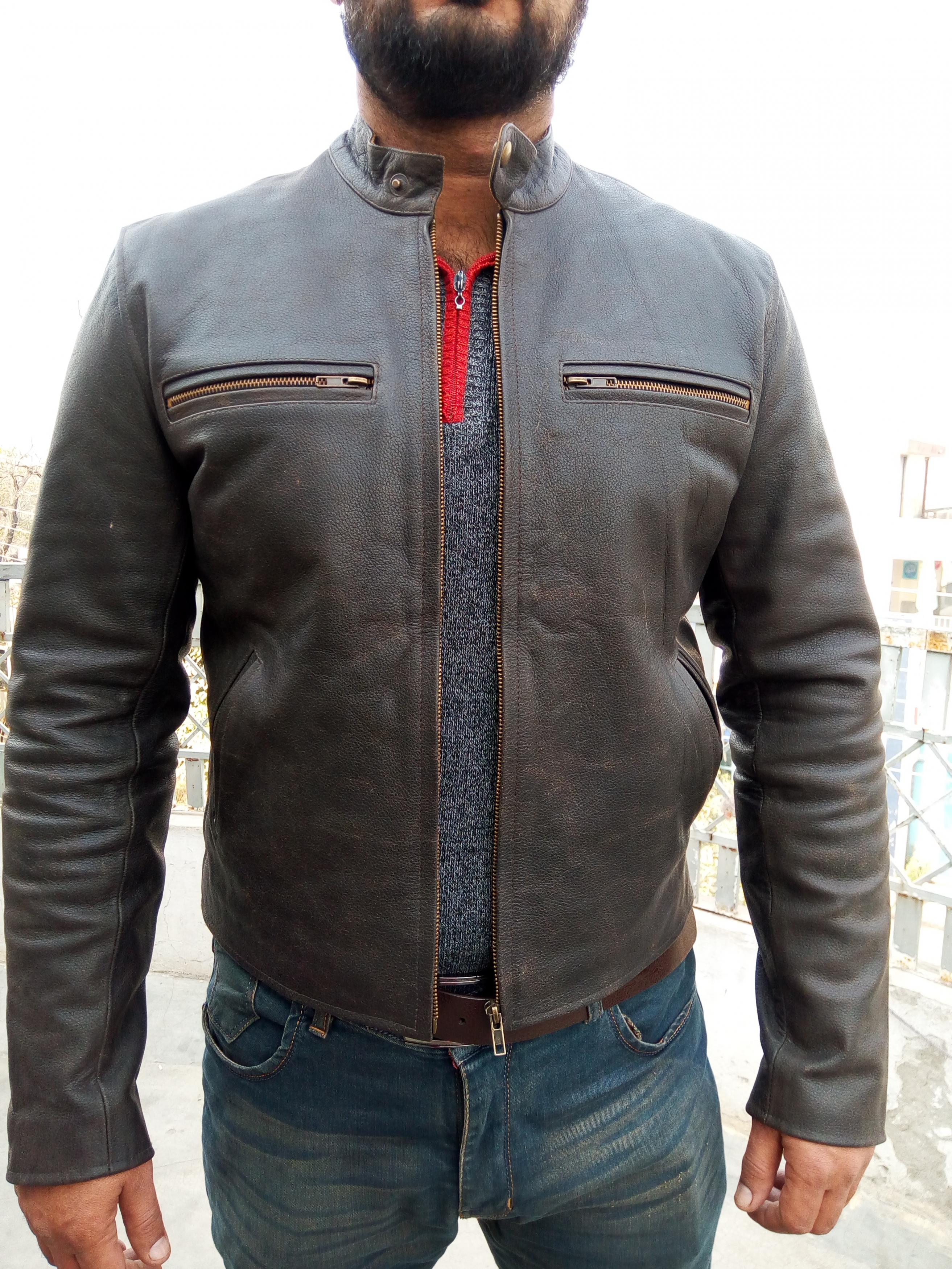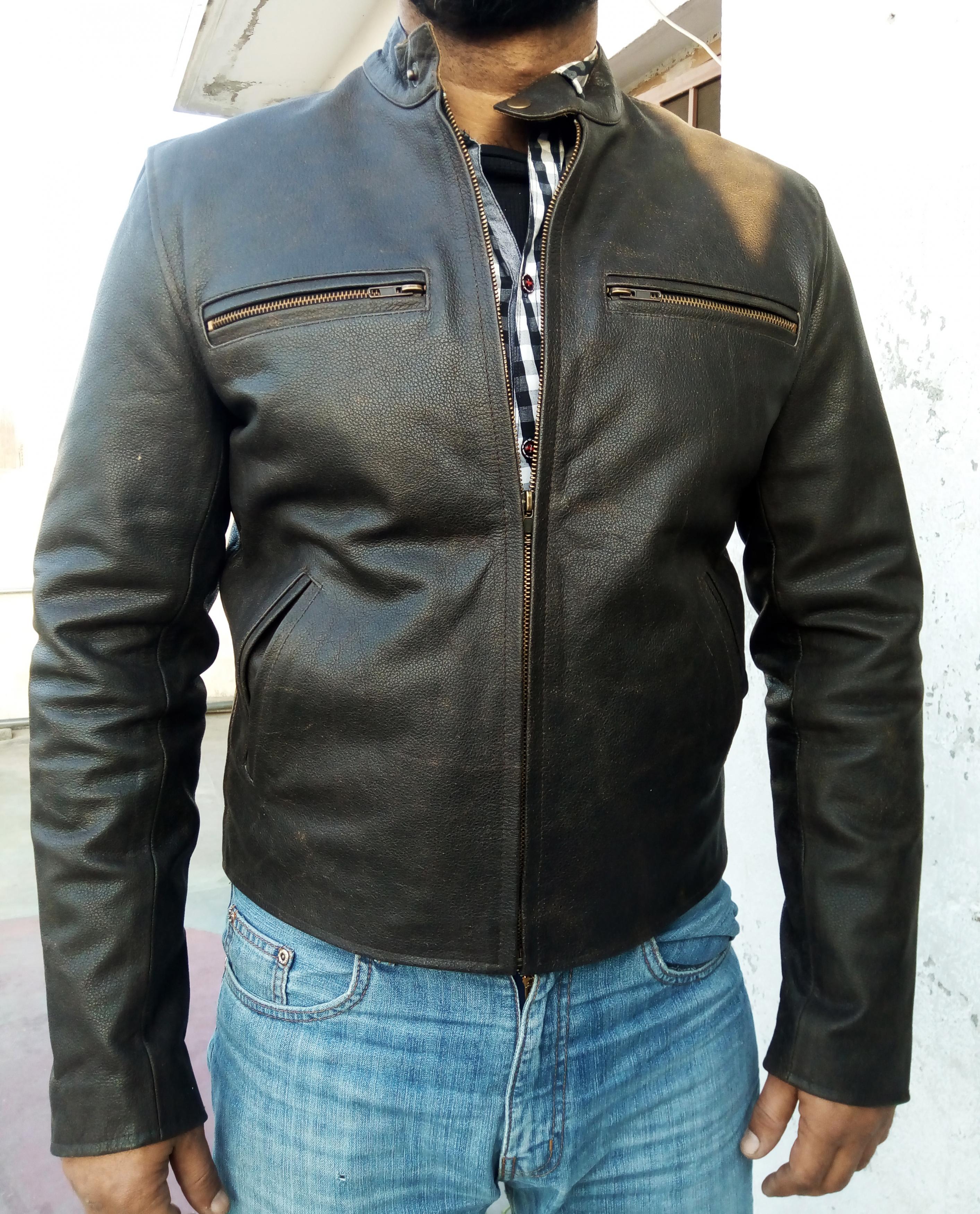 Men Fashion Biker Distress Leather Jacket Slim Fit , Men's Leather jacket