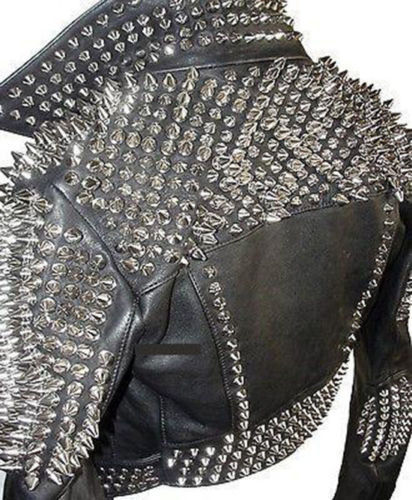 Handmade Black Leather Rock Punk Style Studded Spiked Biker Motorcycle jacket For Men