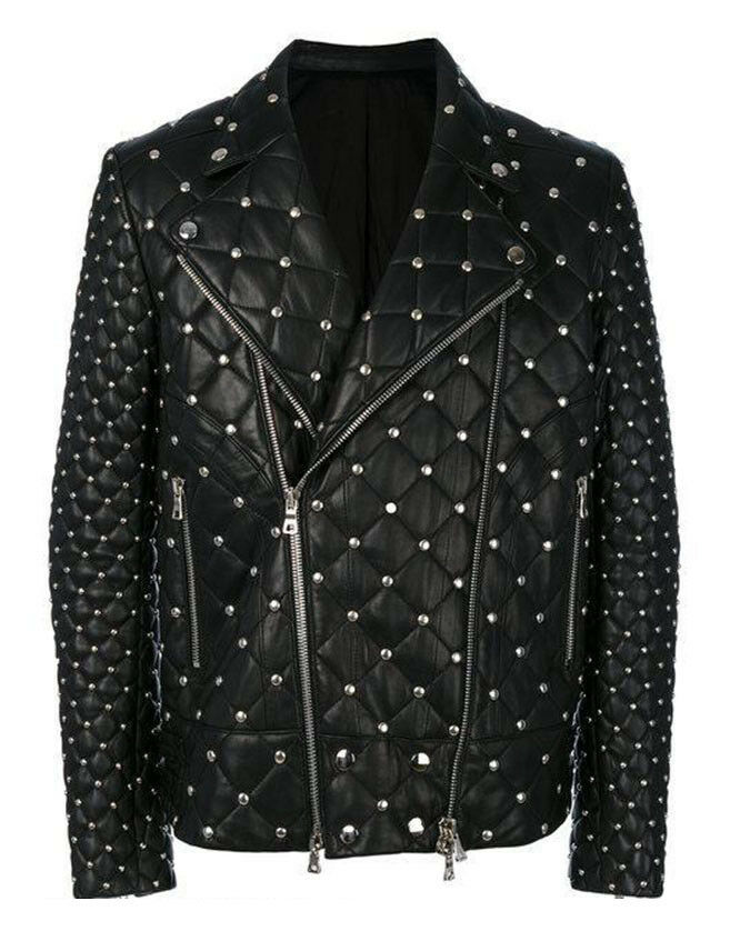Handmade Studded Quilted Biker jacket Men, Designer Fashion Leather Jacket