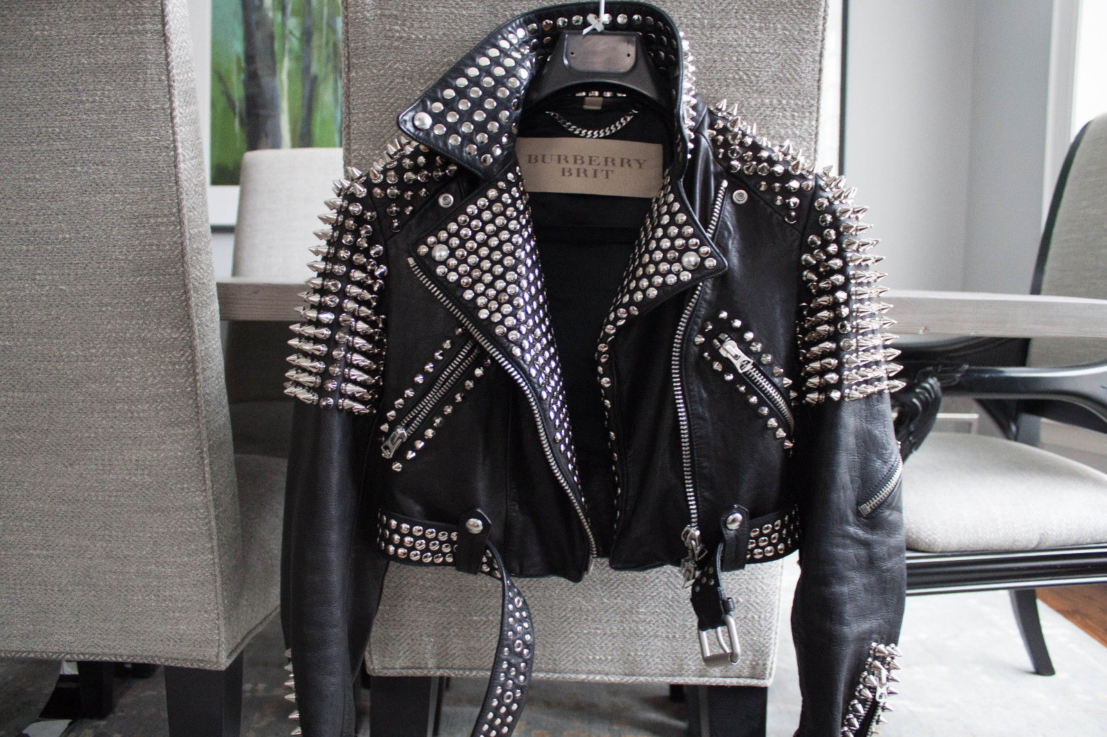New Woman Black Punk Silver Spiked Studded Brando Style Cowhide Leather Jacket6