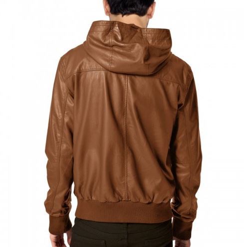 Handmade Men's Leather Jacket Stylish Brown Double Closure Bomber Hood Leather Jacket