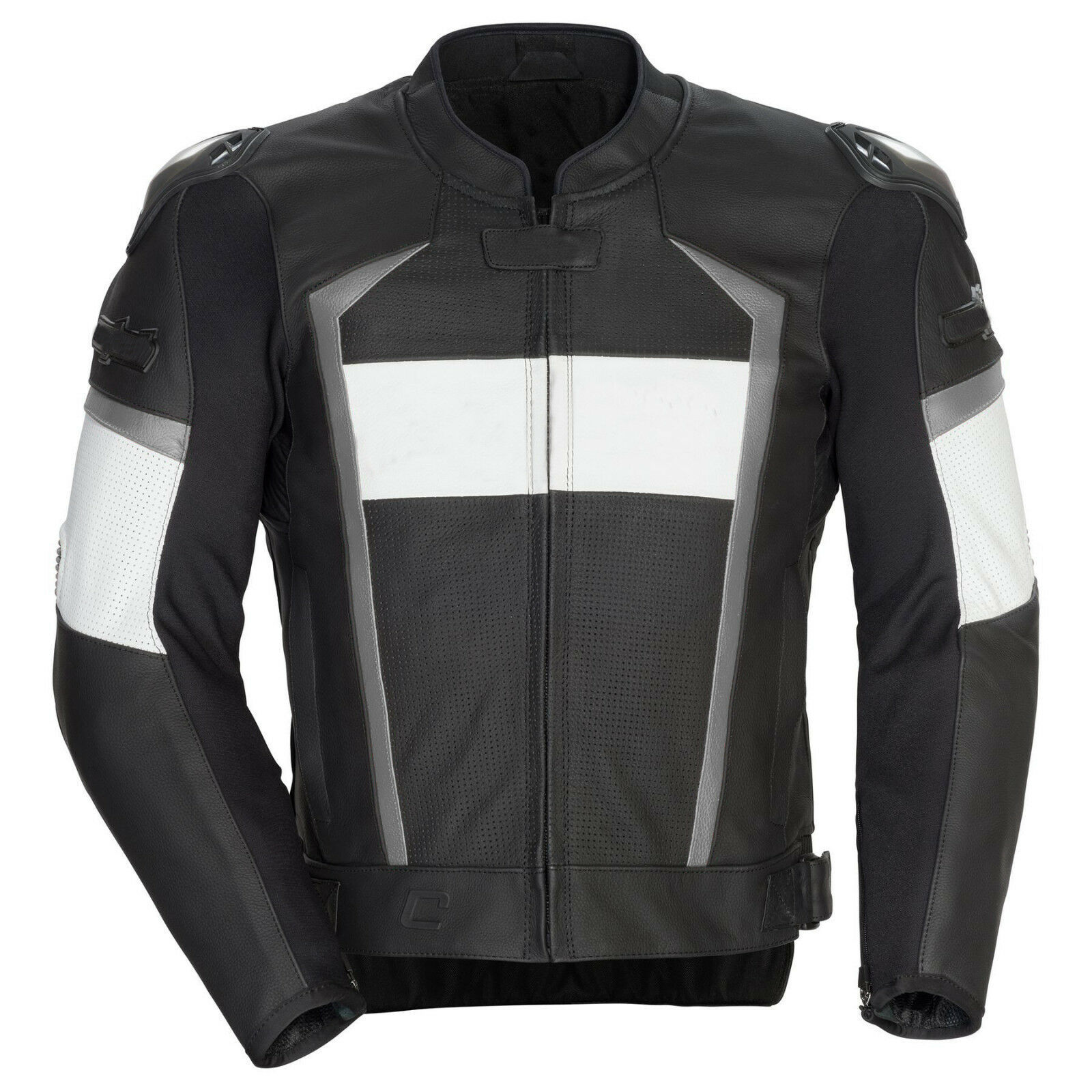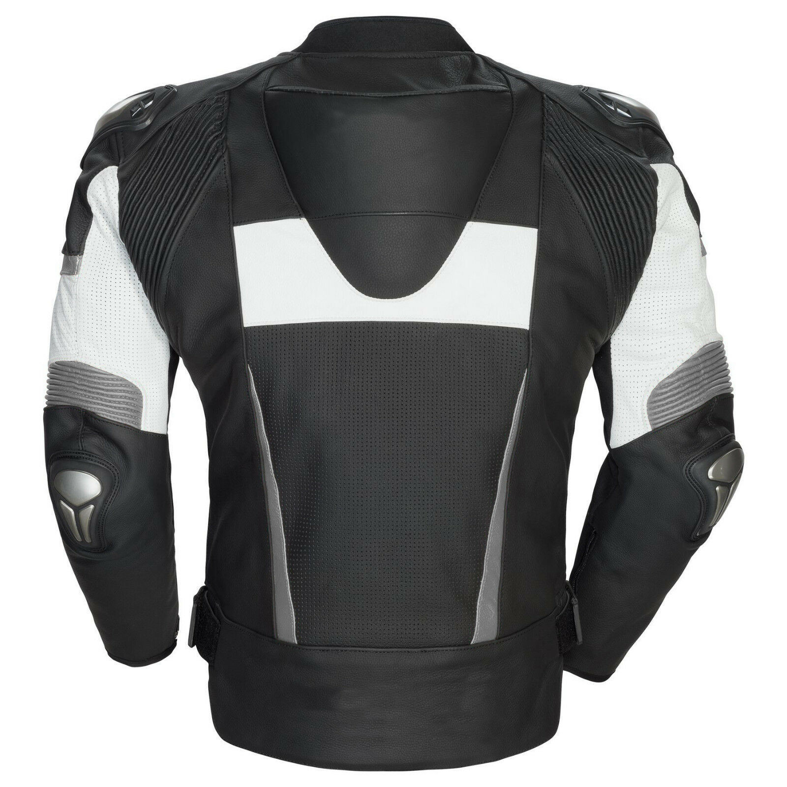 Men Black White Motorcycle Gray Lines Real Leather Safety Pads jacket Speed Hump