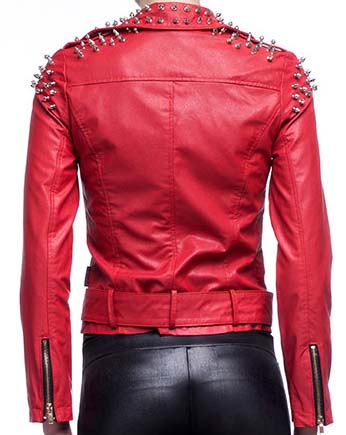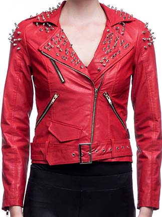 Women Red Studded Fashion Leather Jacket With Shoulder spikes