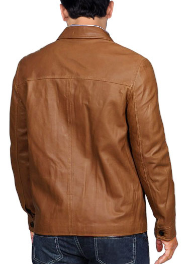 Men Tan Brown Button Style Biker Leather Coat Jacket