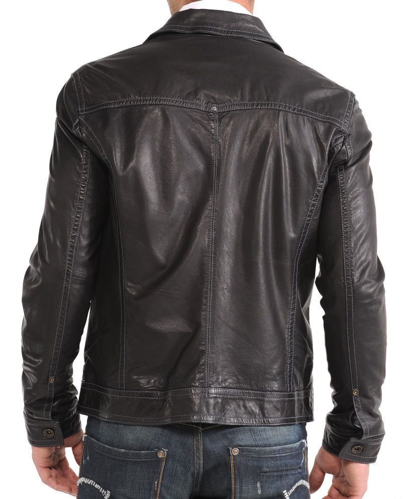 Men Black Signature Shirt Collar Washed Leather Jacket, Men's Leather Jacket 2016