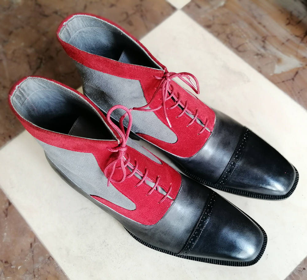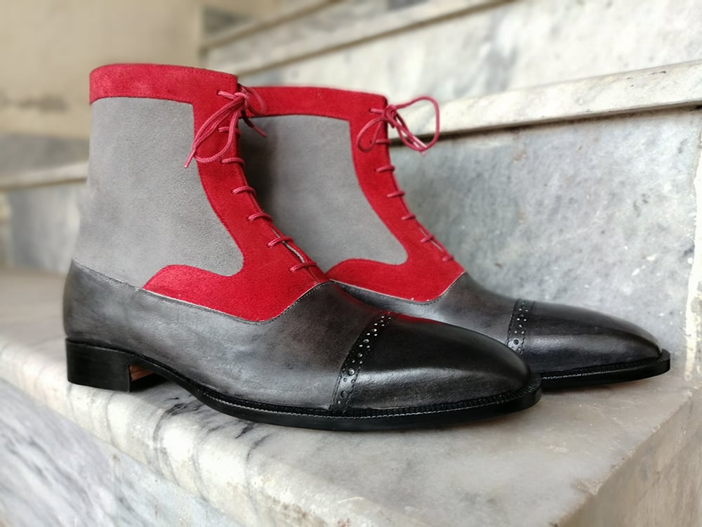 Handmade Men Leather Suede and leather Boot, Men Ankle High Lace Up Cap Toe dress Formal Boot