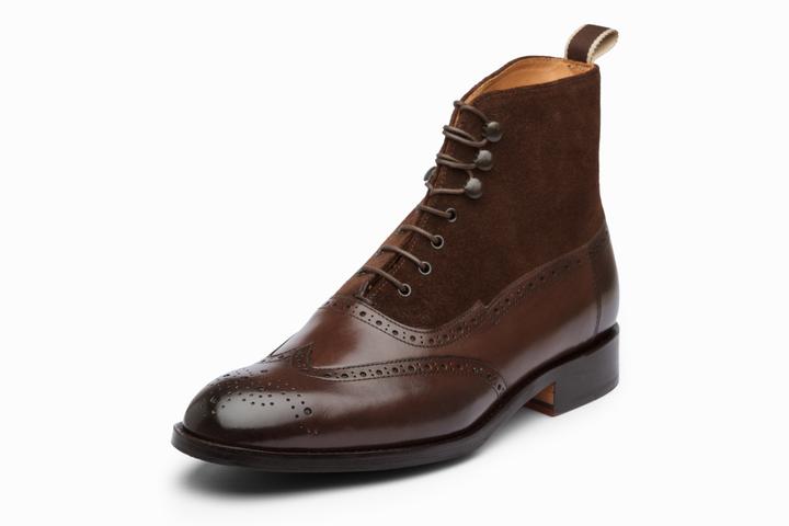 Men Hand stitched Leather Boots, Brown Leather formal Denim wing tip brogue Ankle boot