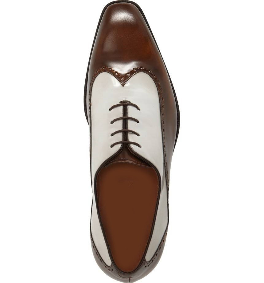 Handmade Men's Casual Shoes, Men's Brown White Leather WingTip Lace Up Shoes