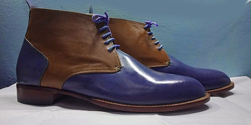 Handmade Men's Ankle High Boot, Men's Blue Brown Leather Lace Up Casual Boot.