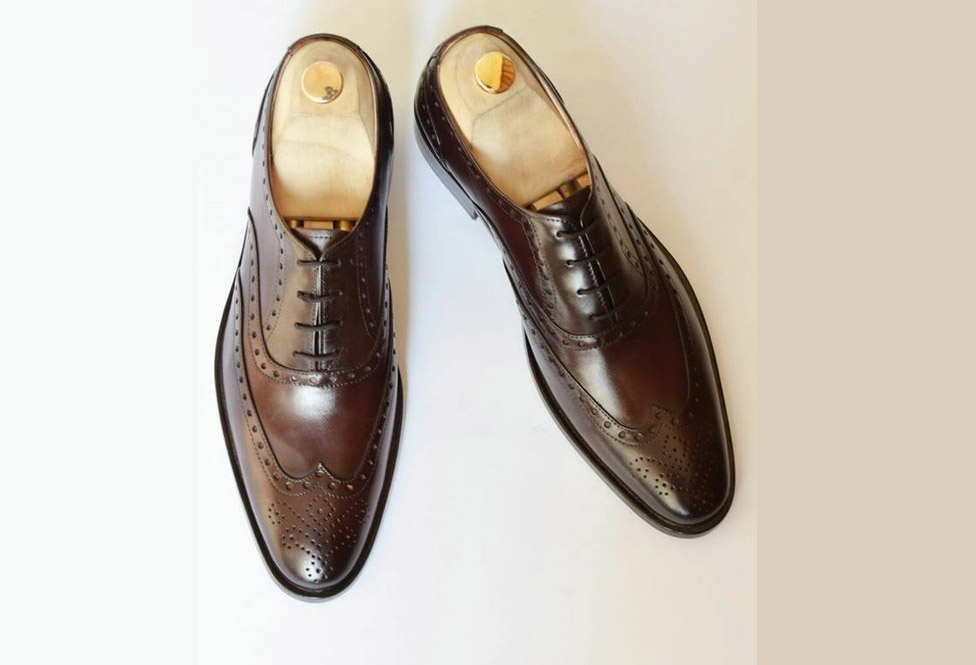 Handmade Men's Formal Shoes, Men's Chocolate Brown Leather Wing Tip Lace UP Casual Shoes