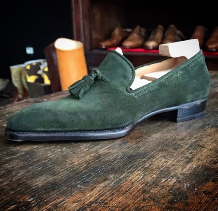 Handmade Men's Green Suede Loafer Shoes, Men's Leather Party Dress Shoes
