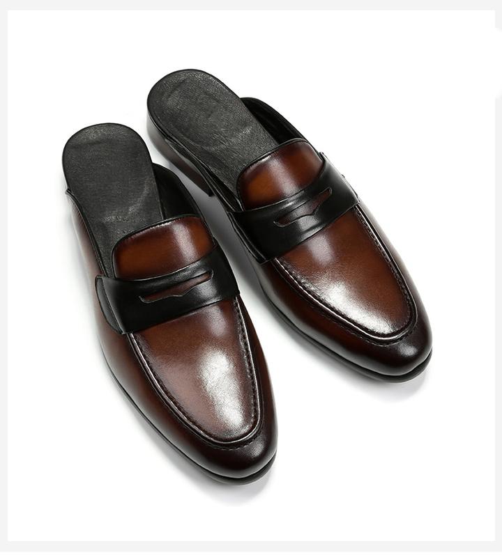 Handmade Men Burgundy & Black Leather Dress Formal Slip On Penny Open Loafers