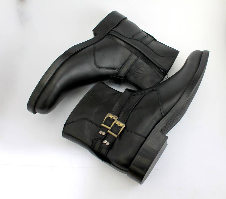 New Men's Handmade Black Leather Buckle Half Ankle Side Zipper Boot
