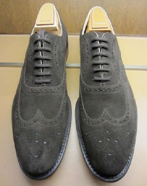 men's Gray Suede Lace Up Shoes Men Dress Formal Wing Tip Brogue Shoes