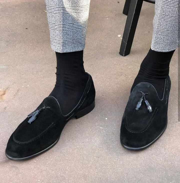 Handmade Black Suede Loafer Slipper Party Dress Men's Fashion Moccasin Tussles Shoes