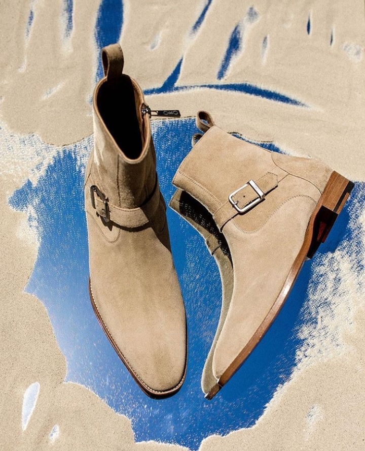Men's Handmade Beige Ankle High Suede Boot Stylish Side Zipper Jodhpurs Buckle Boot