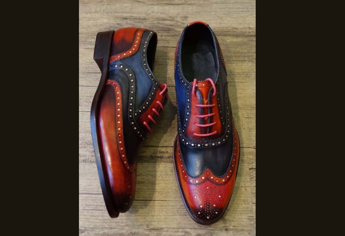 Handmade Men's Burgundy Navy Blue Color Shoes Wing Tip Brogue Leather Lace Up Formal Shoes