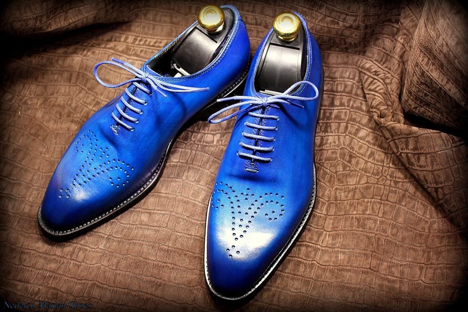 Handmade Men's Blue Color Shoes Derby Brogue Leather Lace Up Formal Shoes