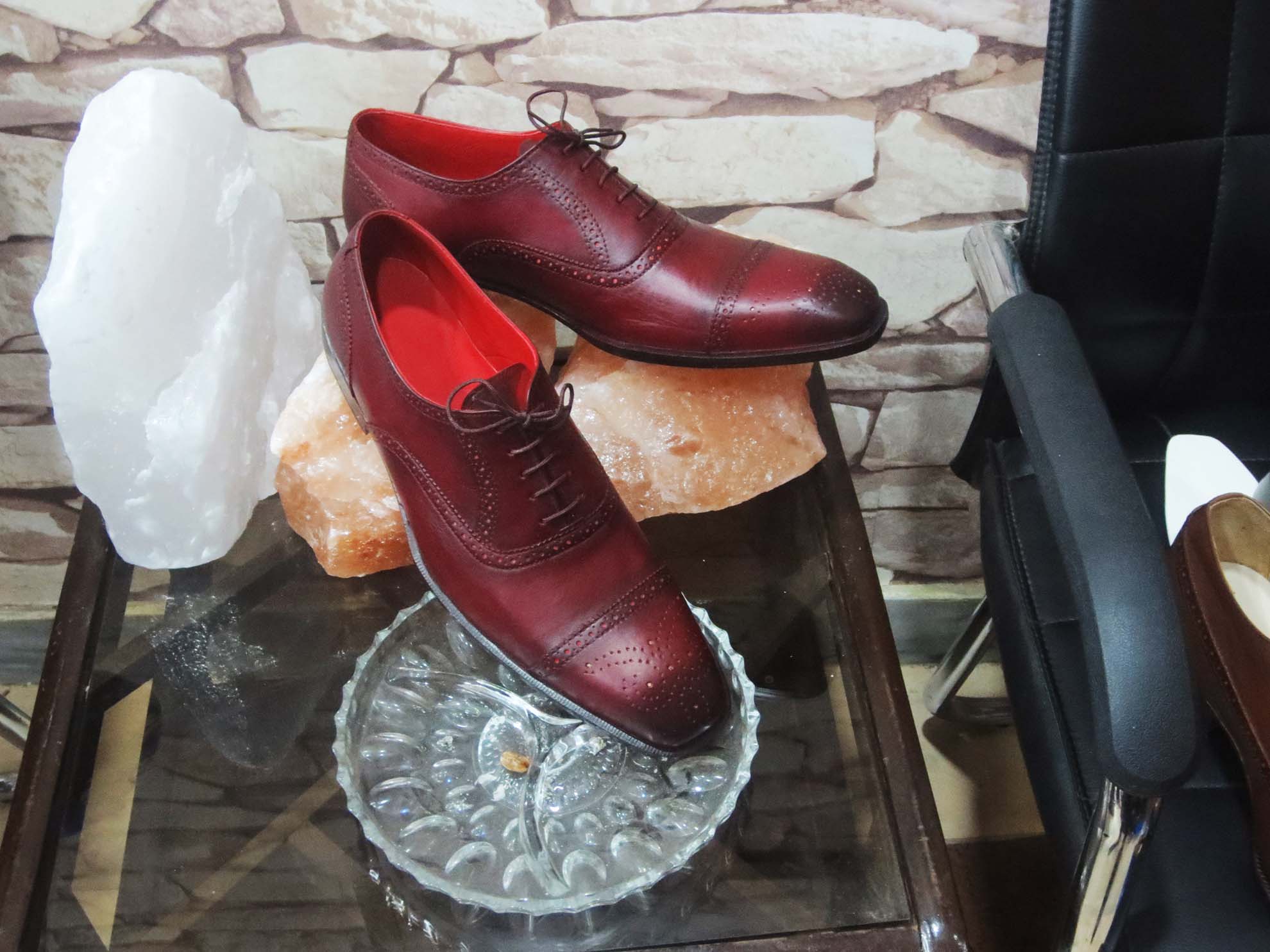 Handmade Men's Burgundy Color Shoes Stylish Leather Cap Toe Brogue Lace Up Shoes
