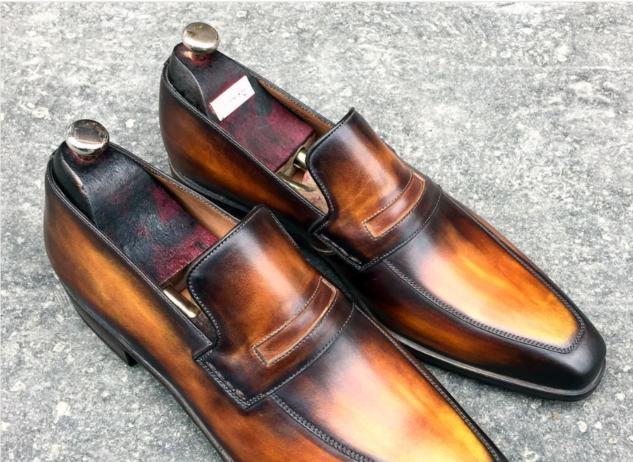 Handmade Cognac Tan Leather Penny Loafer Slipper Dress Men's Fashion Moccasin Shoes