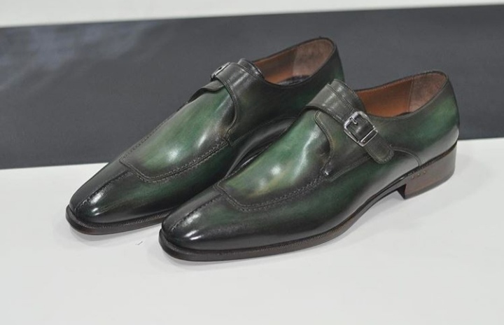 Handmade Green Color Leather Shoes, Men's Slip Toe Monk Strap Dress Shoes