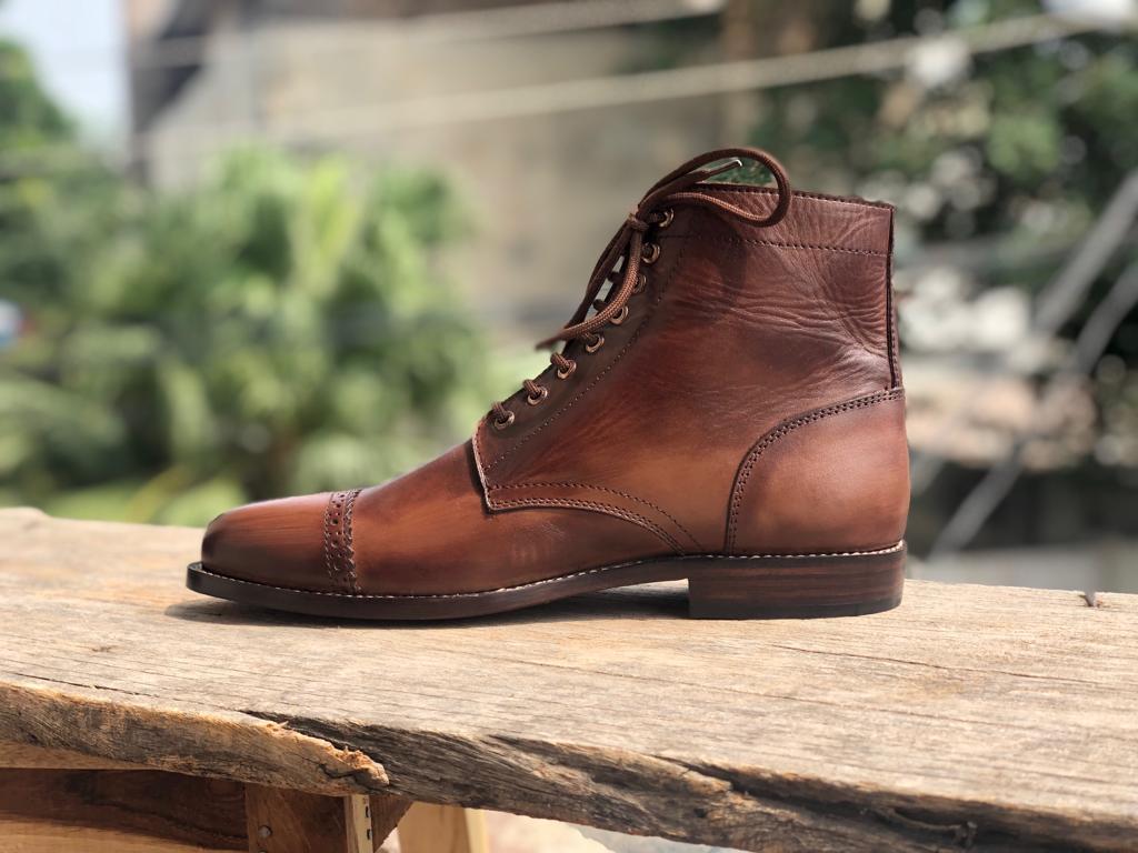 Handmade Pure Rusty Antique Brown Leather Casual Ankle Boots for Men's