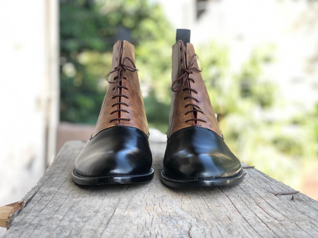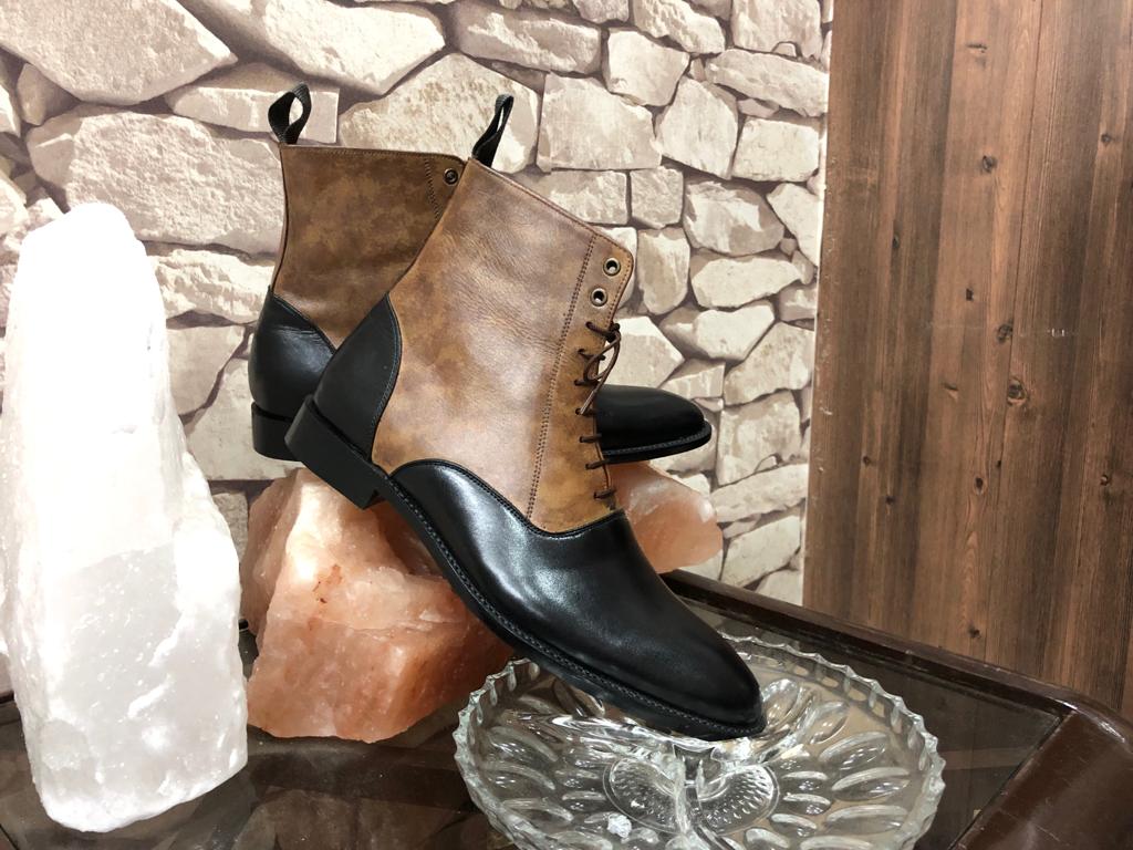 Handmade Black Brown Leather Casual Ankle High Lace Up Boots for Men's